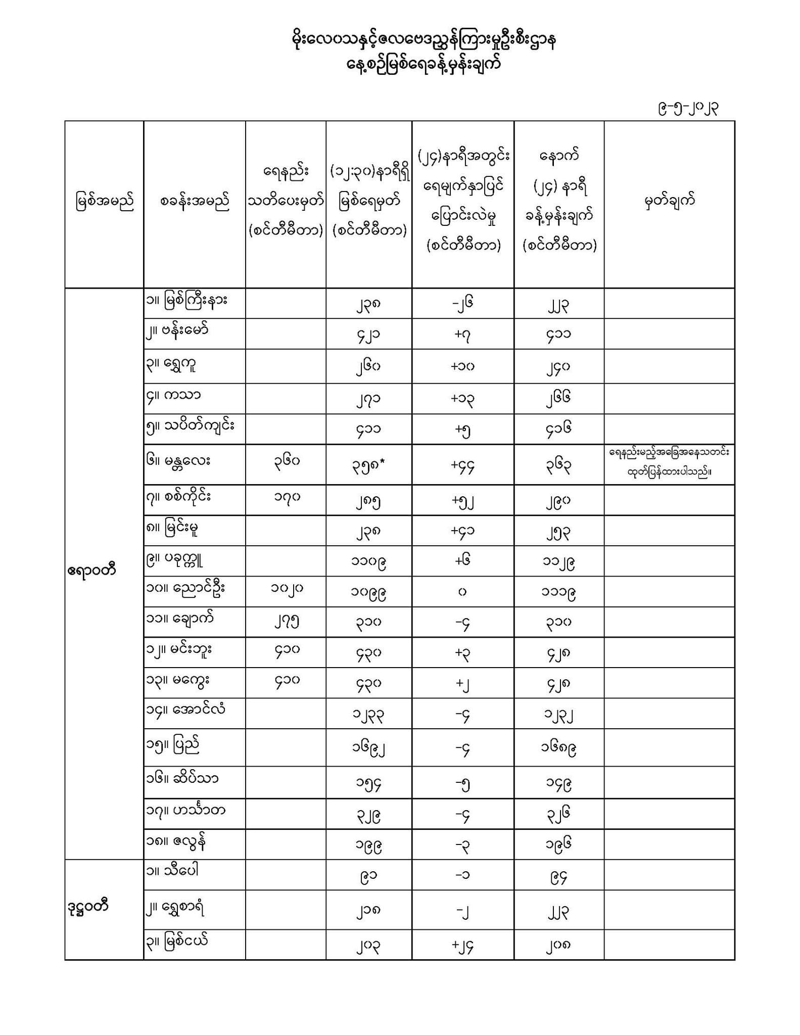 မိုးလေဝသနှင့်ဇလဗေဒညွှန်ကြားမှုဦးစီးဌာနမှ (၉.၅.၂၀၂၃) ရက်နေ့တွင် ထုတ်ပြန်သည့် နေ့စဉ်မြစ်ရေခန့်မှန်းချက်များ
