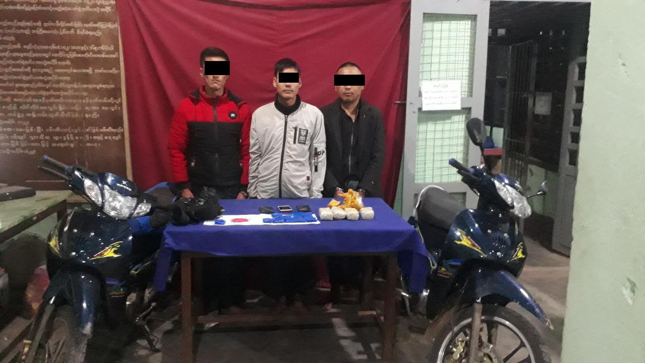 တပ်မတော်မှ ယမန်နေ့ နံနက် ၅ နာရီက မိုးမိတ်မြို့နယ်၊ စင့်ကင်ကျေးရွာအနီး၊ ပင်ရှားစေး-စင့်ကင်ကျေးရွာသွားလမ်းတွင် ကျော်ဦး မောင်းနှင်ပြီး ရွှေသား လိုက်ပါလာသော မော်တော် ဆိုင်ကယ်နှင့် အောင်ကျော် မောင်းနှင်လာသောမော်တော်ဆိုင်ကယ် ၂ စီးကို ရပ်တန့်ရှာဖွေရာ စိတ်ကြွရူးသွပ်ဆေးပြား ၁၀,၀၀၀ နှင့် လက်ကိုင်ဖုန်း ၃ လုံးတို့ကို သိမ်းဆည်းရမိခဲ့သည်။