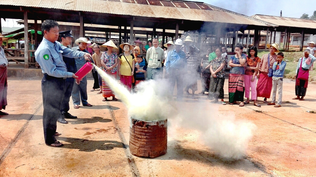 ရှေးဦးစွာ မြို့နယ်မီးသတ်တပ်ဖွဲ့ဦးစီးမှူး ဦးကျော်မင်းနိုင်က မီးဘေးအန္တရာယ် ဖြစ်ပွားရခြင်း အကြောင်းအရင်းများ၊ မီးဘေးလုံခြုံရေးနှင့် ပတ်သက်သော သိကောင်းစရာများ၊ မီးသတ်ဆေးဘူး အသုံးပြုပုံများကို ရှင်းလင်းပြောကြားပြီး၊ ပြည်သူများ မိမိကိုယ်တိုင် နည်းလမ်းတကျ မီးငြိမ်းသတ် နိုင်စေရန်အတွက် မီးငြိမ်းသတ်ပုံ အဆင့်ဆင့်ကို မီးသတ်တပ်ဖွဲ့ဝင်များက လက်တွေ့သရုပ်ပြ ဆောင်ရွက်ခဲ့ကြောင်း သိရသည်။