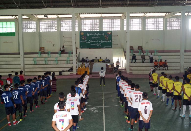ရှမ်းပြည်နယ်(အရှေ့ပိုင်း) မိုင်းဆတ်မြို့၌ မြို့နယ်စီမံအုပ်ချုပ်ရေးအဖွဲ့နှင့် မြို့နယ်အားကစားနှင့် ကာယပညာ ဦးစီးဌာနတို့ ပူးပေါင်းစီစဉ်ကျင်းပသည့် မြို့နယ်စီမံအုပ်ချုပ်ရေးအဖွဲ့ဥက္ကဋ္ဌဖလား အသက် (၂၅)နှစ်အောက် ကလပ်ပေါင်းစုံ ဖူဆယ်ဘောလုံး ပြိုင်ပွဲဖွင့်ပွဲအခမ်းအနားကို ဇူလိုင် ၄ ရက် မွန်းလွဲပိုင်းက မိုးလုံလေလုံ အားကစားခန်းမတွင် ကျင်းပသည်။