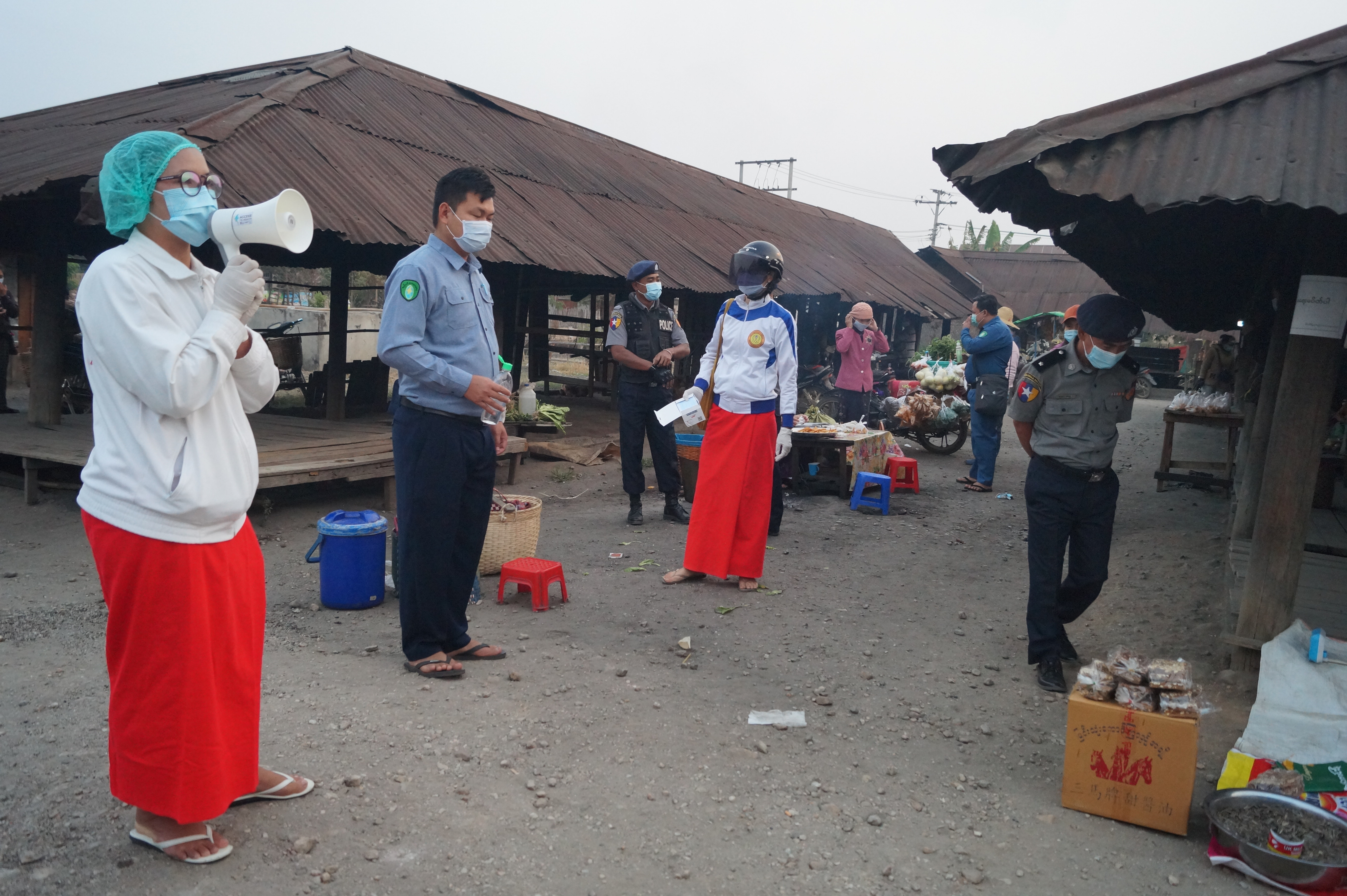 အဆိုပါကွင်းဆင်းမှုတွင် မြို့နယ်အဆင့် ကိုဗစ်-၁၉ ရောဂါ ထိန်းချုပ်၊ ကာကွယ်၊ ကုသရေးကော်မတီနှင့် ဌာနဆိုင်ရာများ ပူးပေါင်း၍ ကျန်းမာရေးနှာခေါင်းစည်း (၅၀ဝ) ခုကို အခမဲ့ဖြန့်ဝေခြင်း ၊ လက်သန့်ဆေးရေ များဖြင့် ဈေးသူဈေးသားများအား လက်များသန့်စင်ပေးခြင်း၊ ကျန်းမာရေး အသိများရှိစေရန်၊ နှာခေါင်းစည်းတပ်ဆင်ရန်၊ ဈေးအတွင်း လူစုလူဝေးမဖြစ်စေရန်၊ လက်များအားမကြာခဏသန့်စင်ပေးရန် စသည်ဖြင့် အသိပညာပေးနိုးဆော်မှုများ ပြုလုပ်ကာ ကိုဗစ်-၁၉ ရောဂါ ထိန်းချုပ်၊ ကာကွယ်ရေး ကွင်းဆင်း ဆောင်ရွက်ခဲ့ကြကြောင်း သိရှိရသည်။