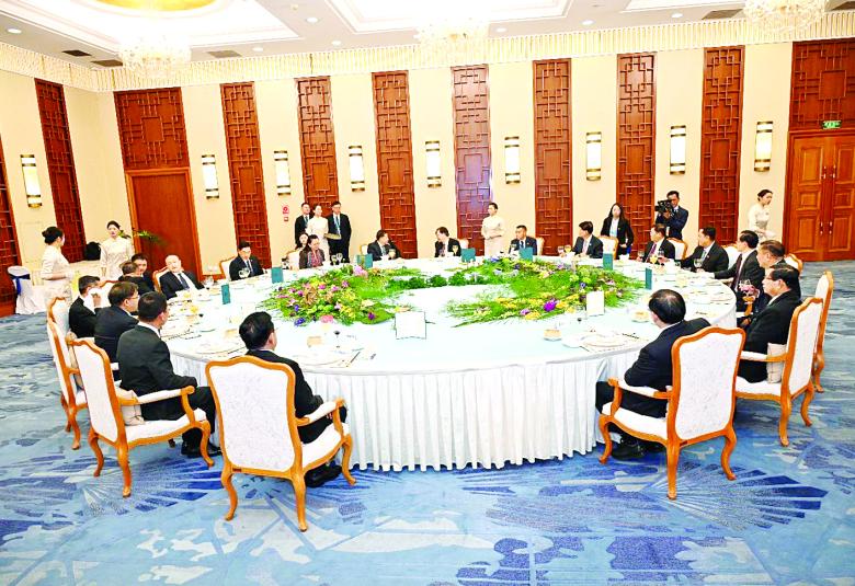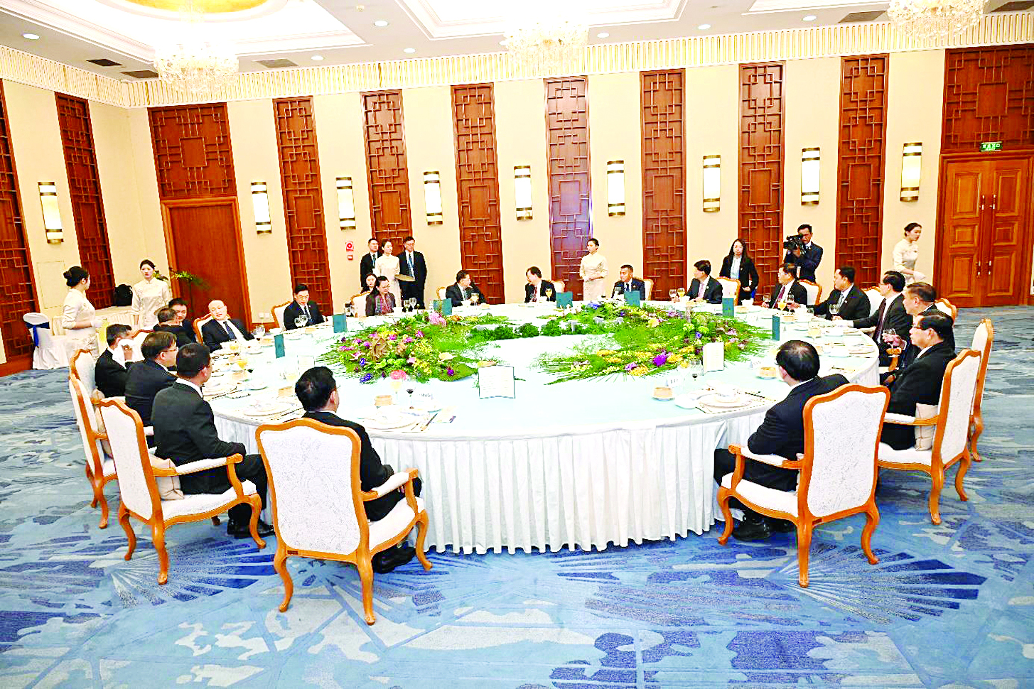 ညပိုင်းမရောက်ခင် ညနေပိုင်းတုန်းက နိုင်ငံတော်ဝန်ကြီးချုပ်ဟာ တရုတ်ကွန်မြူနစ်ပါတီဗဟိုကော်မတီ ပေါလစ်ဗျူရိုအဖွဲ့ဝင်၊ ချုံချင့်မြို့မြူနီစီပယ်ပါတီကော်မတီအတွင်းရေးမှူး မစ္စတာယွမ်ကျားကျွန်နဲ့တွေ့ဆုံပြီး သိပ္ပံနဲ့နည်းပညာဆိုင်ရာ ပူးပေါင်းဆောင်ရွက်မှုများ၊ ယဉ်ကျေးမှုဖလှယ်မှုများ၊ ပညာရေးကဏ္ဍနဲ့ ခရီးသွားကဏ္ဍမြှင့်တင်ဆောင်ရွက်နိုင်မယ့် အခြေအနေတွေနဲ့ ပတ်သက်ပြီး ရင်းနှီးပွင့်လင်းစွာ အမြင်ချင်း ဖလှယ်ဆွေးနွေးကြပါတယ်။