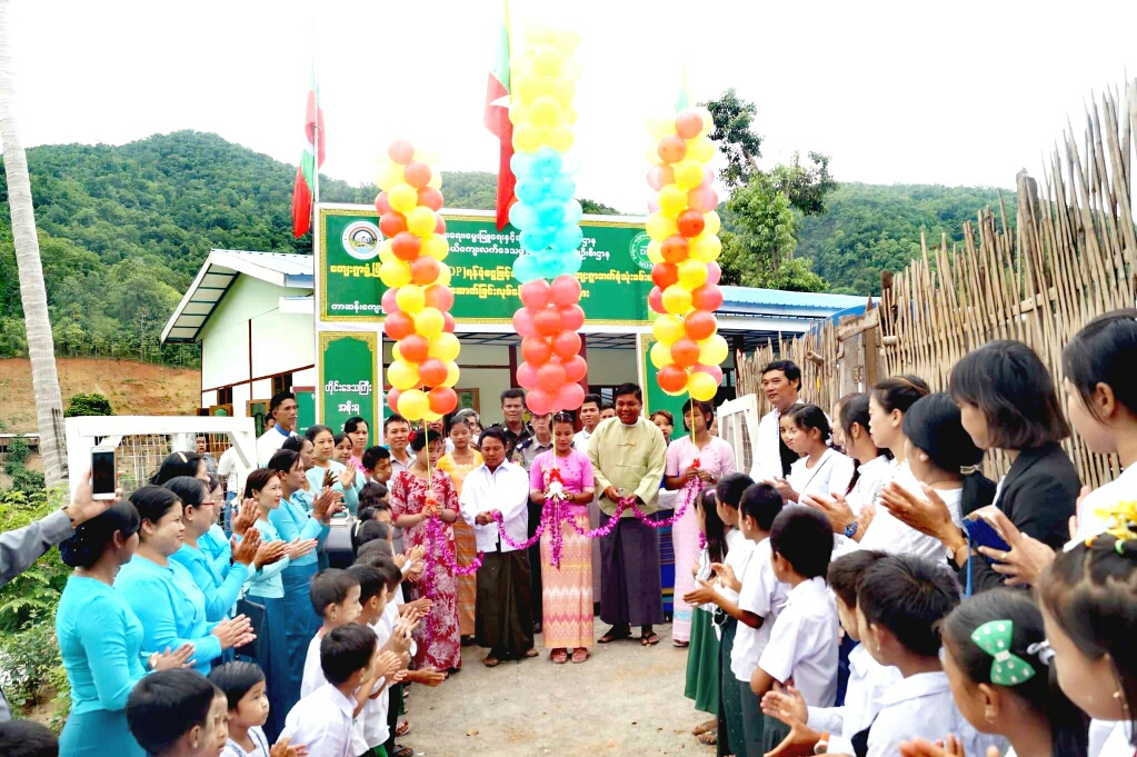 အခမ်းအနားတွင် မြို့နယ်စီမံခန့်ခွဲမှုကော်မတီဥက္ကဋ္ဌ ဦးစိုးမင်းထက်က အဖွင့်အမှာစကား ပြောကြားခဲ့ပြီး မြို့နယ် ကျေးလက်ဒေသဖွံ့ဖြိုးတိုးတက်ရေးဦးစီးဌာနမှူး ဦးမိုင်းမြင့်နိုင်ထွန်းက VDP ကျေးရွာဖွံ့ဖြိုးရေး စီမံကိန်း နှင့်စပ်လျဉ်း၍ ရှင်းလင်းပြောကြားခဲ့သည်။ ထို့နောက် ကျေးရွာတာဝန်ခံ ဦးမောင်ဇော်က ခန်းမဆောင်အား မိမိတို့၏သားစဉ်မြေးဆက် ရေရှည်တည်တံ့အောင် လက်ဆင့်ကမ်း ထိန်းသိမ်းပြီး အသုံးပြုသွားမည်ဖြစ်ကြောင်း ကျေးဇူးတင်စကားပြောကြားခဲ့သည်။