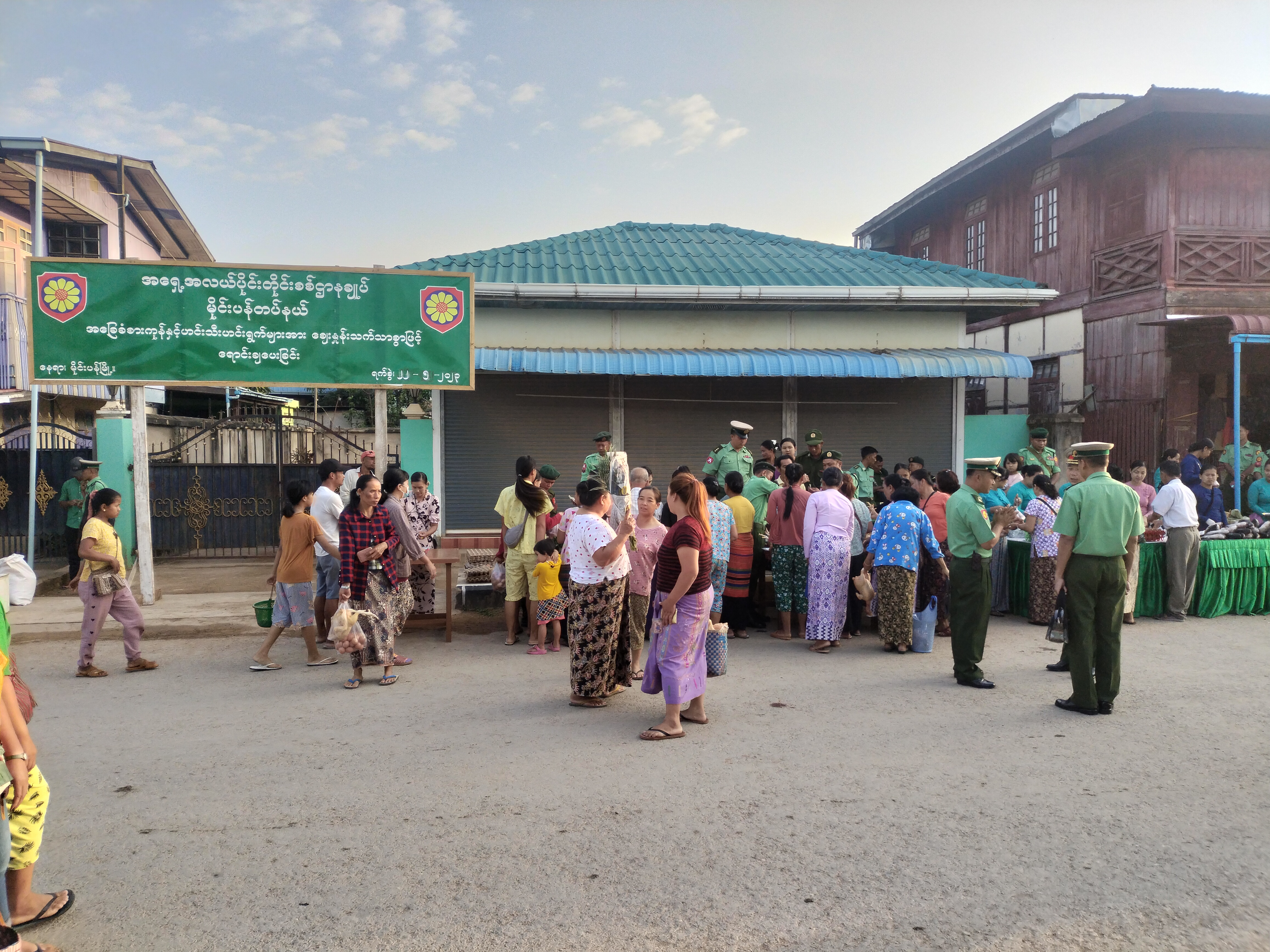 ရှမ်းပြည်နယ်(တောင်ပိုင်း)၊ လင်ခေးခရိုင်၊ မိုင်းပန်မြို့နယ်တွင် ဒေသခံပြည်သူများ ဈေးနှုန်းချိုသာစွာဖြင့် ဝယ်ယူစားသုံးနိုင်ရေးအတွက် အရှေ့အလယ်ပိုင်းတိုင်းစစ်ဌာချုပ် မိုင်းပန်တပ်နယ်မှ မြို့မဈေးရှေ့တွင် မေ ၂၂ ရက် နံနက်ပိုင်းက ရောင်းချပေးခဲ့သည်။