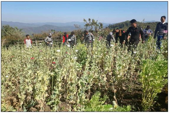 မိုင်းပျဉ်းမြို့နယ်၊ လွယ်မွန်းကျေးရွာ အနောက်ဘက်၌ ဖေဖော်ဝါရီ ၉ ရက်တွင် အမြင့်(၂)ပေခန့်ရှိ ဘိန်းစိုက်ခင်း (၄)ဧကခန့်အား မိုင်းပျဉ်းမြို့မရဲစခန်းမှ တပ်ဖွဲ့ဝင်များ ပါဝင်သည့် ပူးပေါင်းအဖွဲ့က ဖျက်ဆီးရှင်းလင်းခဲ့ကြောင်း ရဲပြန်ကြားမှ သိရသည်။