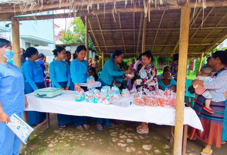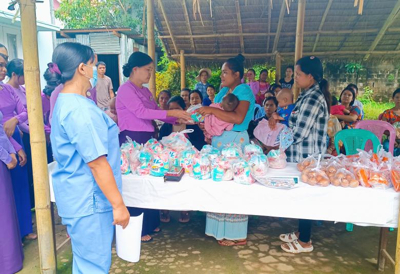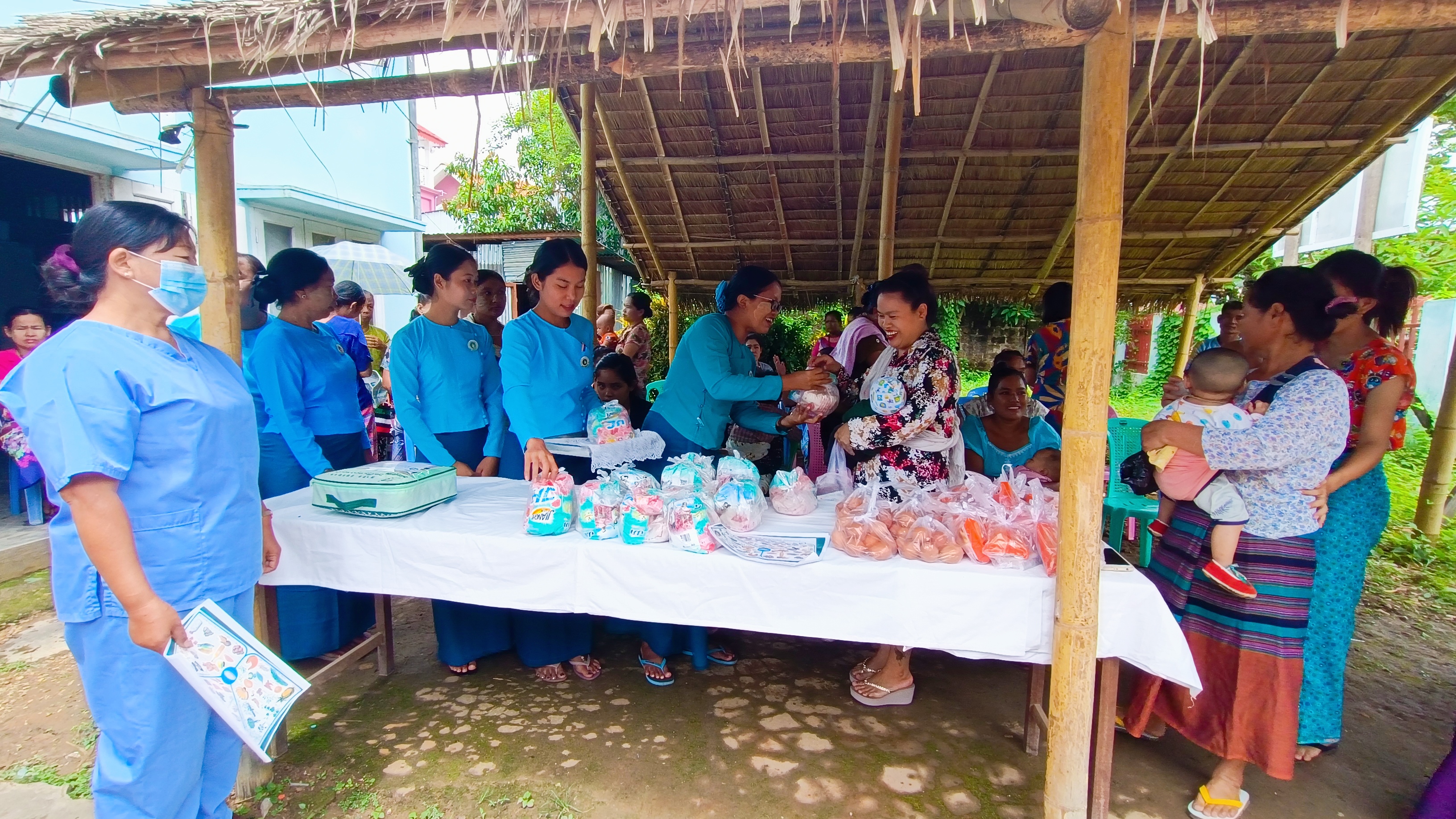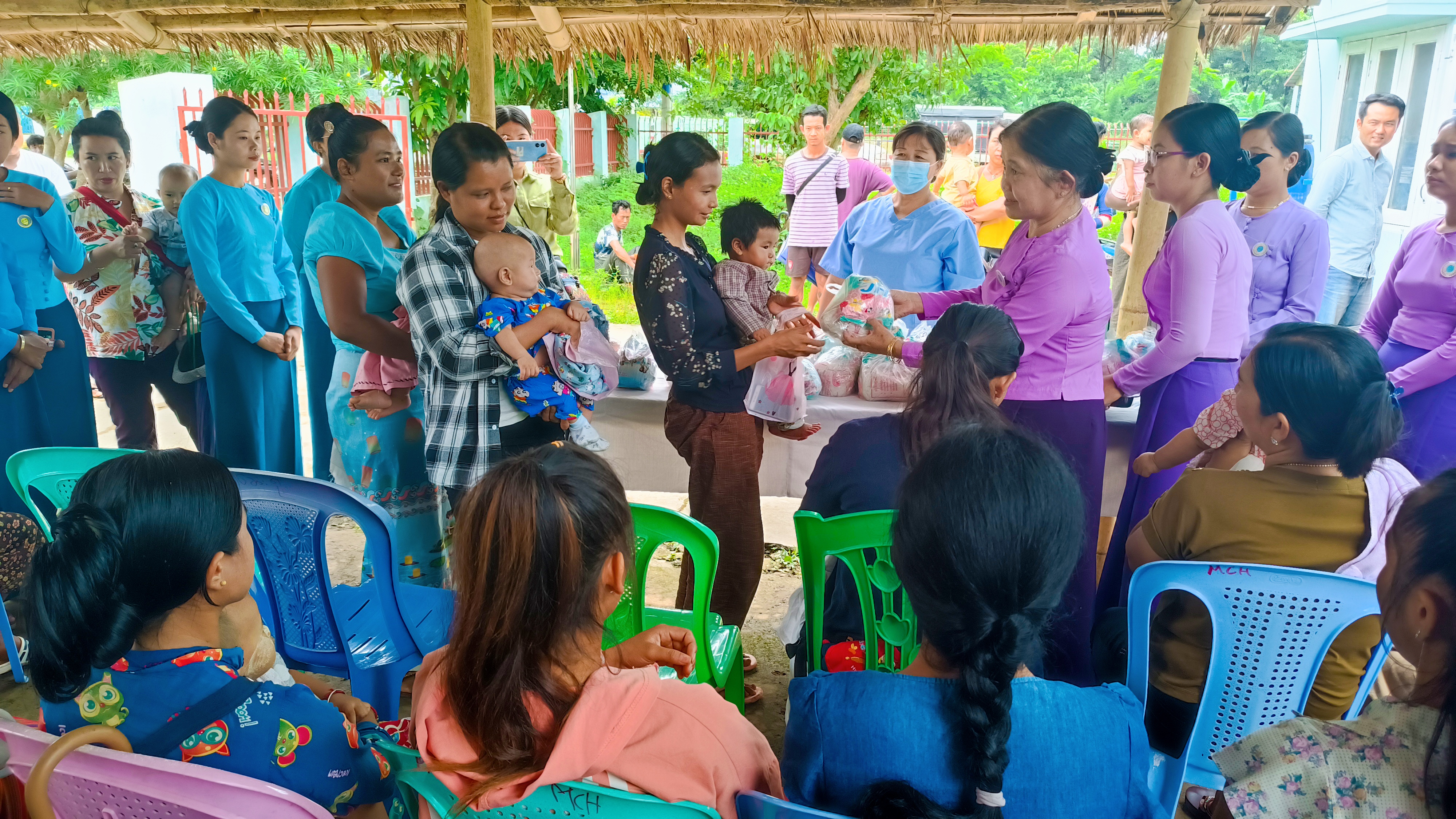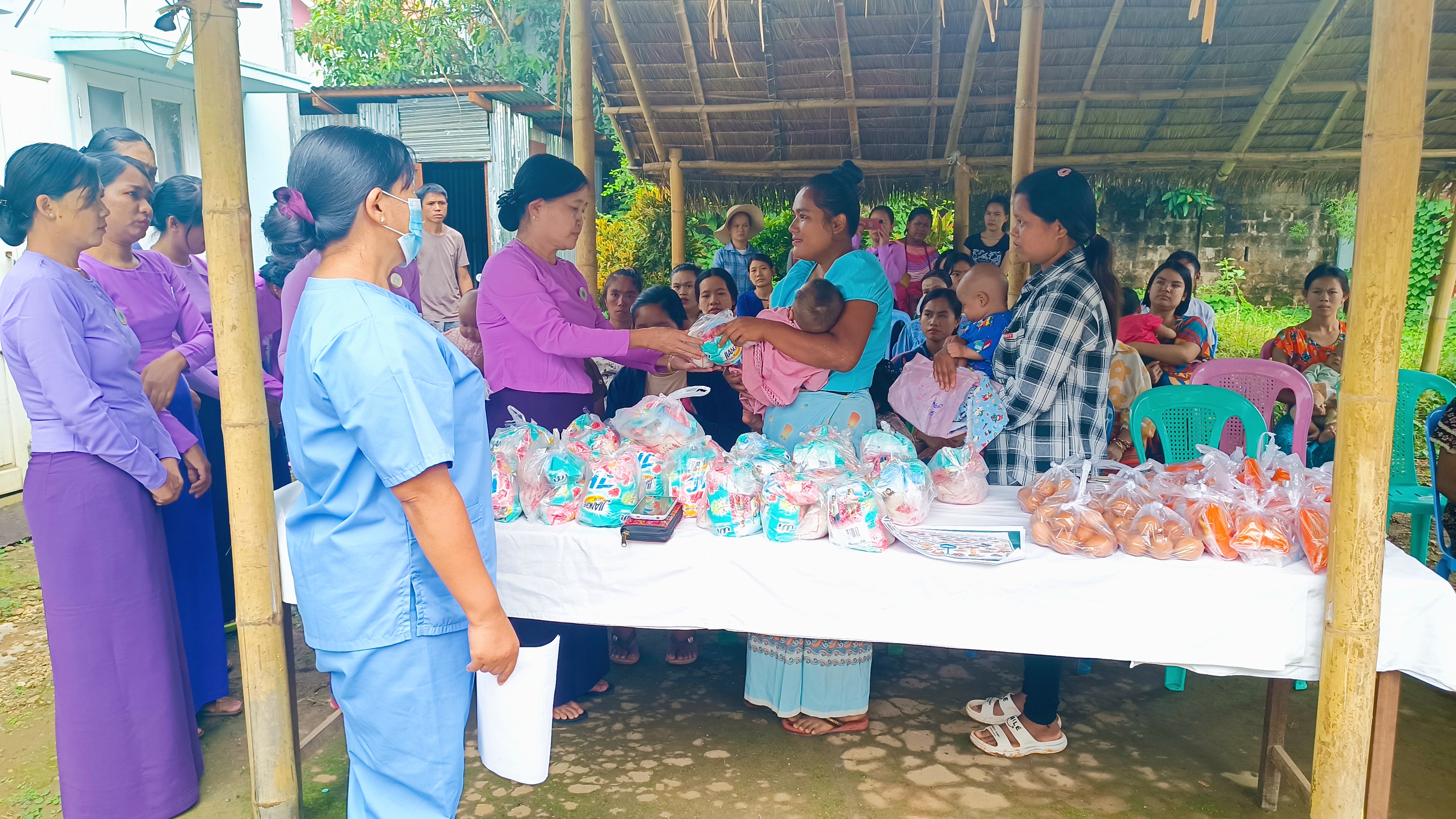 အဆိုပါ ဆောင်ရွက်မှုကို အမျိုးသမီးရေးရာအဖွဲ့၊ မိခင်နှင့်ကလေးစောင့်ရှောက်မှု ကြီးကြပ်ရေးအဖွဲ့ ဥက္ကဋ္ဌ ဒေါ်နန်းလီနှင့် ကျန်းမာရေးဆရာမ ဒေါ်ဘီနူးတို့က ကိုယ်ဝန်ဆောင်မိခင်များနှင့် အသက်(၂)အောက် ကလေးငယ်မိခင်များကို မိခင်နှင့်ကလေးငယ်များ ကျန်းမာကြံ့ခိုင်စေရေးအတွက် အာဟာရမျှတစွာ စားသုံးပေးစေလိုကြောင်းနှင့် အာဟာရမျှတမှုမရှိပါက ကျန်းမာရေးဆိုးကျိုးများ ရရှိစေကြောင်း ဟောပြောပြီး အင်အိုဒင်းစား၊ ကြက်ဥ၊ မုန့် စသည့် အာဟာရအစားအစာများနှင့် အိမ်သုံးဆပ်ပြာမုန့်များ ဝေငှပေးသည်။