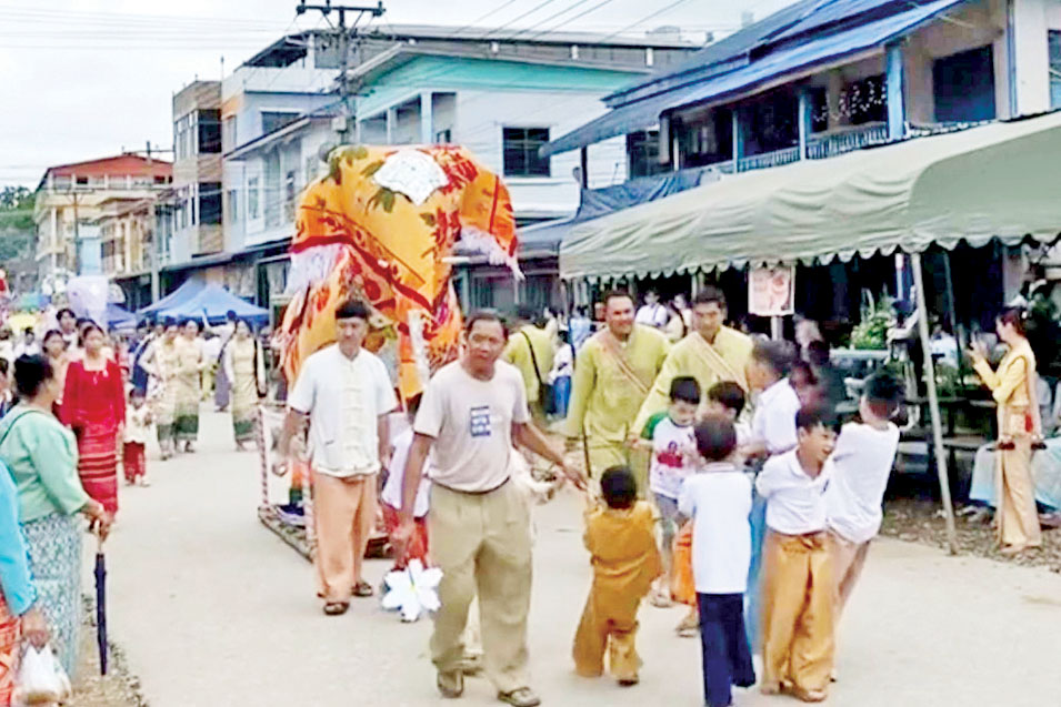 မိုင်းယောင်းမြို့တွင် ဒေသခံတိုင်းရင်းသားများသည် ဘဝသံသရာအတွက် ကောင်းမှုကုသိုလ်အဖြစ် ဆင်ရုပ်များပြုလုပ်ပြီး သံဃာတော်များအား စာရေးတံမဲချ၍ လှူဒါန်းခြင်းဖြစ်သည်။