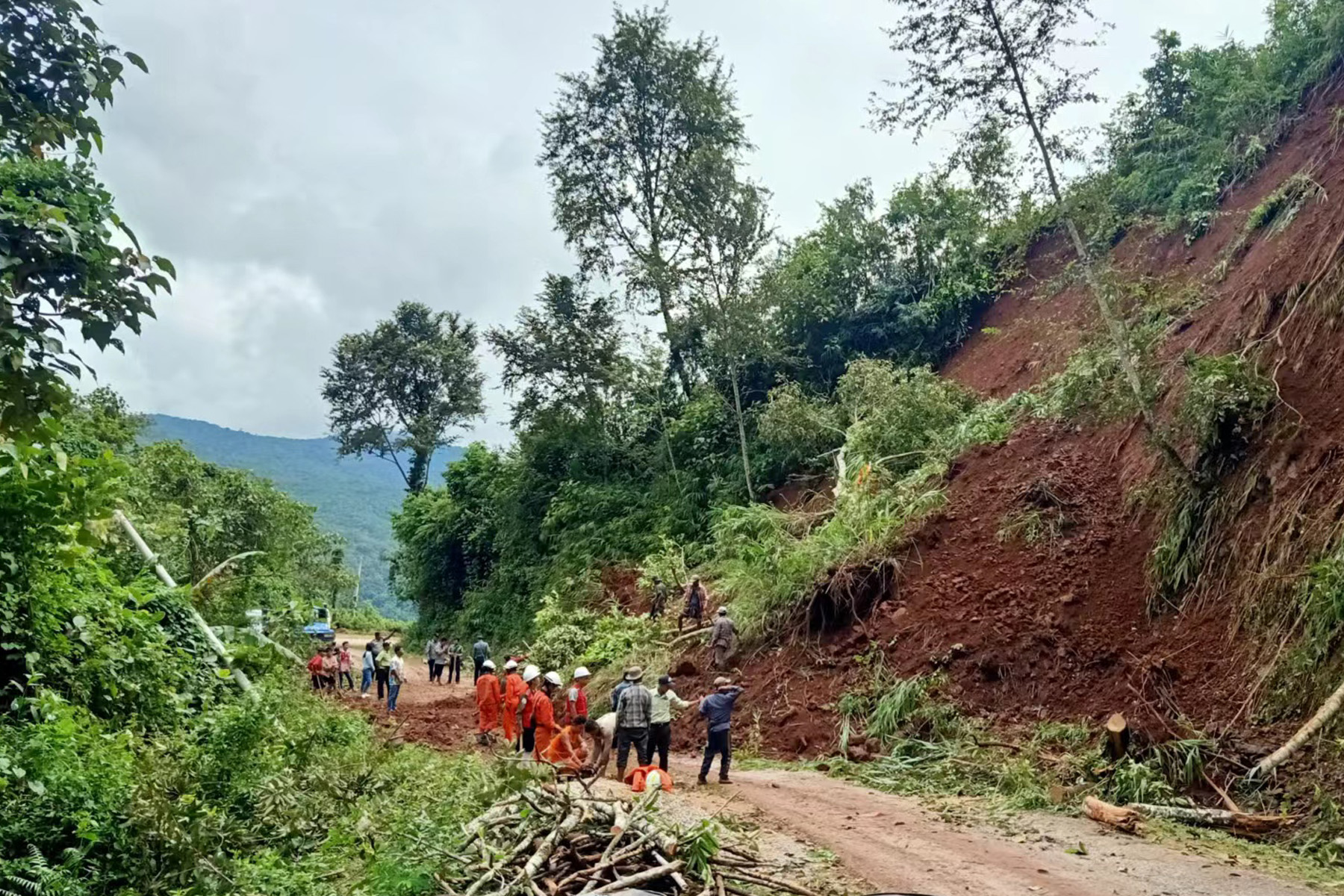 အဆိုပါတောင်ပြိုမှုကြောင့် လမ်းပိတ်ဆို့မှု မဖြစ်ပေါ်စေရေး၊ မော်တော်ယာဉ်များ ဖြတ်သန်း သွားလာရာတွင် အန္တရာယ်တစ်စုံတစ်ရာ မဖြစ်ပေါ်စေရေးအတွက် ခရိုင်စီမံအုပ်ချုပ်ရေးအဖွဲ့ ဥက္ကဋ္ဌ ခရိုင်အုပ်ချုပ်ရေးမှူး ဦးထွန်းထွန်းနိုင်၊ ခရိုင်ရဲတပ်ဖွဲ့မှူး ဒုတိယရဲမှူးကြီး သောမတ်(စ်) နှင့် ရဲတပ်ဖွဲ့ဝင်များ၊ မြို့နယ်စီမံအုပ်ချုပ်ရေးအဖွဲ့ဥက္ကဋ္ဌ မြို့နယ်အုပ်ချုပ်ရေးမှူး ဦးစိုးသက်ဆွေ နှင့် အဖွဲ့ဝင်များ၊ မီးသတ်တပ်ဖွဲ့ဝင်များ၊ ကြက်ခြေနီသူနာပြုတပ်ဖွဲ့ဝင်များက လမ်းမပေါ်ပြိုကျနေသော မြေစာပုံများ၊ သစ်ပင်သစ်ကိုင်းများတို့ကို စုပေါင်းရှင်းလင်း ဆောင်ရွက်ပေးခဲ့ကြောင်း သိရသည်။