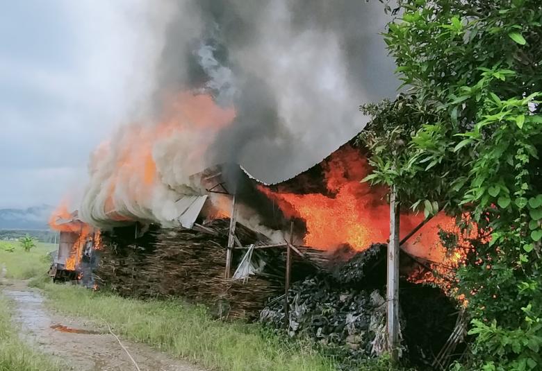 ရှမ်းပြည်နယ်(အရှေ့ပိုင်း)၊ တာချီလိတ်ခရိုင်၊ နယ်စပ်ဒေသ မိုင်းယုမြို့ မြို့မရပ်ကွက်ရှိ ငရုတ်ခြံအတွင်း စိုက်ပျိုးရေးသုံးပစ္စည်းများ သိုလှောင်ထားသည့် သံတိုင်၊ သွပ်မိုးသွပ်ကာဂိုဒေါင်တစ်လုံး ဇူလိုင် ၂၆ ရက် နံနက် ၇ နာရီ ၄၅ မိနစ်ခန့်က လျှပ်စစ်ဝိုင်ယာရှော့ဖြစ်ရာမှ မီးလောင်မှုပွားခဲ့သည်။