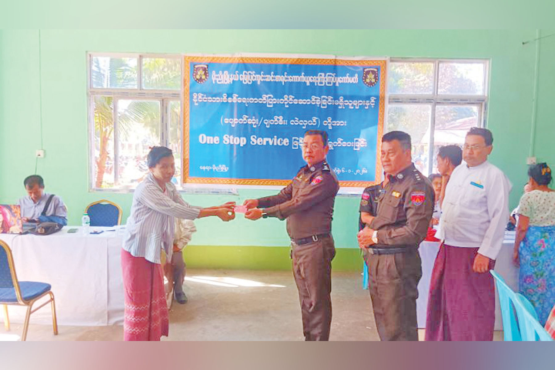 ပဲခူးတိုင်းဒေသကြီး မိုးညိုမြို့နယ် မြေပြင်ကွင်းဆင်းစာရင်းကောက်ယူရေး ကြီးကြပ်မှုကော်မတီ၏ ဦးဆောင်မှုဖြင့် မိုးညိုမြို့နယ် လူဝင်မှုကြီးကြပ်ရေးနှင့်ပြည်သူ့အင်အားဝန်ကြီးဌာနဝန်ထမ်းများက မြို့နယ်အတွင်းရှိ မဲပေးခွင့်ရှိပြီး နိုင်ငံသားစိစစ်ရေးကတ် ပျောက်ဆုံး၊ ပျက်စီး၊ မထင်ရှားဖြစ်နေသူများအား မြို့နယ်အထွေထွေအုပ်ချုပ်ရေးဦးစီးဌာန OSS ခန်းမ၌ ဇန်နဝါရီ ၆ ရက်တွင် One Stop Service ဖြင့် အခမဲ့ဆောင်ရွက်ပေးသည်။