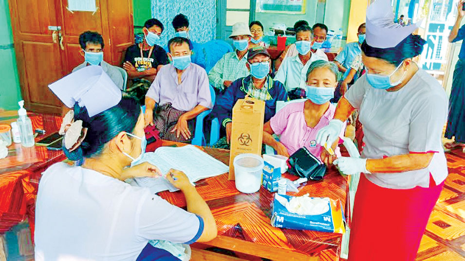 ထို့နောက် ကျန်းမာရေးအတွက် လာရောက် စစ်ဆေးပြသသူ ၂၁ ဦးအား ကိုယ်အလေးချိန်တိုင်းတာခြင်း၊ သွေးပေါင်ချိန်ခြင်း၊ သွေးတိုး၊ ဆီးချိုသွေးချိုရောဂါများ စစ်ဆေး၍ လိုအပ်သော ဆေးဝါးနှင့် ကုသခြင်းများကို အခမဲ့ဆောင်ရွက် ပေးခဲ့ကြောင်း သိရသည်။