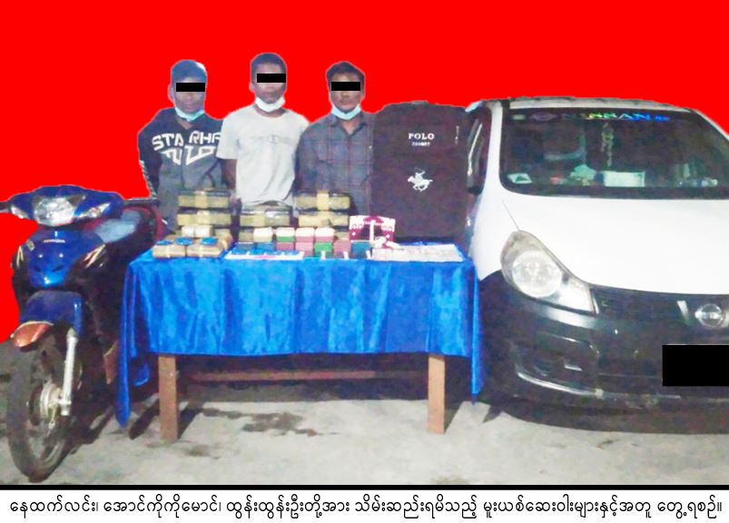 ထို့အတူ ညနေ ၄ နာရီတွင် မူးယစ်ဆေးဝါး တားဆီးနှိမ်နင်းရေး ရဲတပ်ဖွဲ့မှ တပ်ဖွဲ့ဝင်များသည် ပုသိမ်ကြီးမြို့နယ်၊ ကျောက်ချောကျေးရွာအနီးရှိ ၁၆ မိုင်စစ်ဆေးရေးဂိတ်တွင် ထွန်းထွန်းဦး မောင်းနှင်ပြီး အောင်ကိုကိုမောင် လိုက်ပါလာသော AD VAN အမျိုးအစားမော်တော်ယာဉ်အား ရပ်တန့်စစ်ဆေး ရှာဖွေရာ ယာဉ်နောက်ခန်းရှိ ခရီးဆောင်အိတ်အတွင်းမှ ဘိန်းဖြူ သုည ဒသမ ၉၉ ကီလိုနှင့် စိတ်ကြွရူးသွပ်ဆေးပြား ၂၉,၇၀၀ တို့ကို သိမ်းဆည်းရမိခဲ့ပြီး ကွင်းဆက်အရ ည ၇ နာရီ ၄၅ မိနစ်တွင် ရမည်းသင်းမြို့နယ်၊ ရန်ကုန်-မန္တလေး အမြန်လမ်းမကြီး၊ မိုင်တိုင်အမှတ်(၂၄၅/၃)အနီးတွင် နေထက်လင်းကို ထပ်မံဖမ်းဆီးရမိခဲ့သဖြင့် ၎င်းတို့အား မူးယစ်ဆေးဝါးနှင့် စိတ်ကိုပြောင်းလဲစေသော ဆေးဝါးများဆိုင်ရာ ဥပဒေအရ အရေးယူထားကြောင်း သိရသည်။
