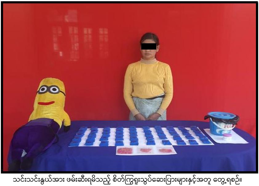 အလားတူ ယင်းနေ့ ည ၁၁ နာရီက ဝိုင်းမော်မြို့မရဲစခန်းမှ တပ်ဖွဲ့ဝင်များပါဝင်သော ပူးပေါင်းအဖွဲ့သည် ဝိုင်းမော်မြို့နယ်၊ (၁၃)ကီလိုမီတာ ပူးပေါင်းစစ်ဆေးရေးဂိတ်တွင် အိုက်အောင် မောင်းနှင်လာသည့် မော်တော်ဆိုင်ကယ်ကို ရပ်တန့်ရှာဖွေရာ စိတ်ကြွရူးသွပ်ဆေးပြား ၁၈၀၀ ကိုလည်းကောင်း၊ ထို့အတူ ယင်းနေ့ နံနက် ၁၁ နာရီခွဲက မူးယစ်ဆေးဝါး တားဆီးနှိမ်နင်းရေးရဲတပ်ဖွဲ့မှ တပ်ဖွဲ့ဝင်များပါဝင်သော ပူးပေါင်းအဖွဲ့သည် ဖားကန့်မြို့နယ်၊ ဆိပ်မူကျေးရွာအုပ်စု၊ ဝှေခါကျေးရွာ၊ အိမ်အမှတ်(၂/၆၂)ရှိ သင်းသင်းနွယ်၏ နေအိမ်ကိုရှာဖွေရာ စိတ်ကြွရူးသွပ်ဆေးပြား ၁၀၂၀၀ သိမ်းဆည်းရမိသဖြင့် ၎င်းတို့အား မူးယစ်ဆေးဝါးနှင့် စိတ်ကိုပြောင်းလဲစေသော ဆေးဝါးများဆိုင်ရာ ဥပဒေအရ အရေးယူထားကြောင်း သိရသည်။
