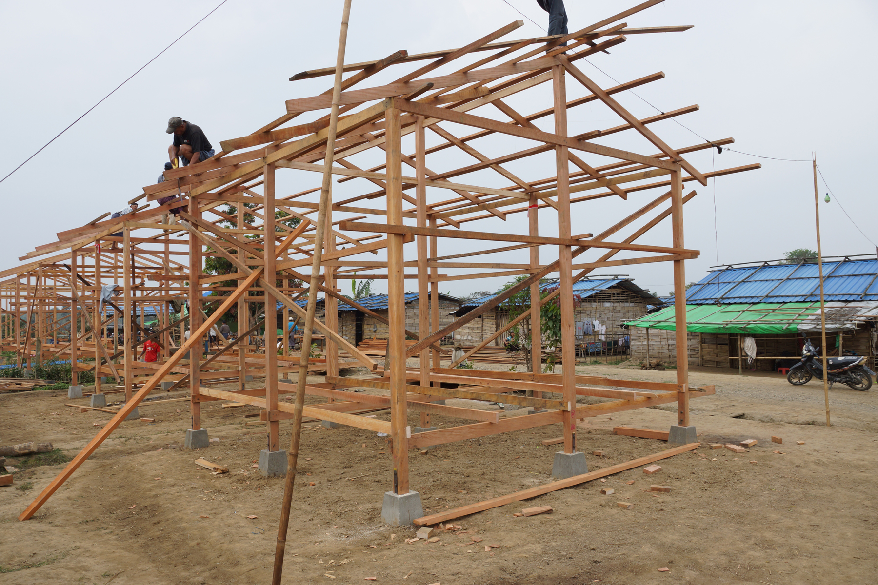 “ကျွန်တော်တို့ ဒီလ နှစ်ရက်နေ့ကစတင် ပန္နက်ချပြီး ဆောက်လုပ်ခဲ့တယ်။ အခုဆို နေအိမ်(၅) လုံးကတိုင်ထူ၊ တန်းတွေပစ်ထားပြီးပြီ။ အခုဆောက်နေတဲ့အိမ်(၅)လုံး သွပ်မိုးပြင်ခင်းပြီးပြီဆိုရင် နောက်(၄)လုံး ဆက်လက်ဆောက်သွားမယ်”ဟု နေအိမ်ဆောက်လုပ်ရေး တာဝန်ခံဦးမျိုးသိန်း က ပြောသည်။