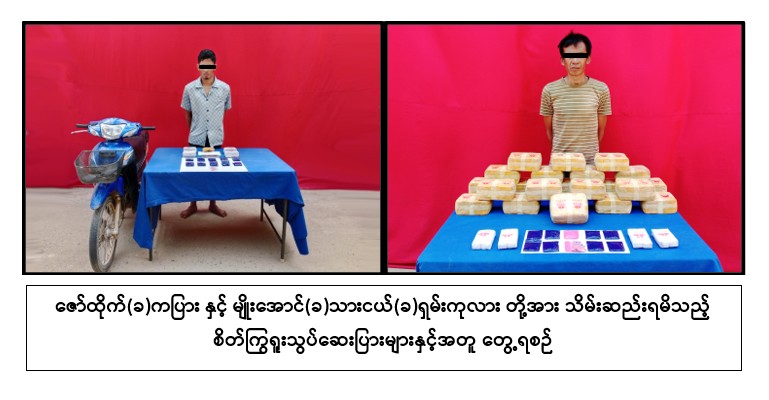 အလားတူ ဖေဖော်ဝါရီ ၉ ရက် မွန်းလွဲ ၃ နာရီတွင် တာချီလိတ်မြို့၊ ဆေခမ်းရပ်ကွက်၊ မြို့ရှောင်လမ်းတွင် ဇော်ထိုက်(ခ)ကပြား မောင်းနှင်လာသည့် မော်တော်ဆိုင်ကယ် ကိုရပ်တန့်စစ်ဆေးရှာဖွေရာ ဆိုင်ကယ်ရှေ့ခြင်းအတွင်းမှ စိတ်ကြွရူးသွပ်ဆေးပြား ၄,၀၀၀ သိမ်းဆည်းရ မိခဲ့ပြီး ၃ နာရီခွဲတွင် တာချီလိတ်မြို့၊ ဆေခမ်းရပ်ကွက်ရှိ ၎င်း၏နေအိမ်မှ စိတ်ကြွရူးသွပ်ဆေးပြား ၆,၀၀၀ ထပ်မံသိမ်းဆည်းရမိခဲ့သဖြင့် စုစုပေါင်း စိတ်ကြွရူးသွပ်ဆေးပြား ၁၀,၀၀၀ (တစ်ပြားလျှင် ၄၀၀ ကျပ်နှုန်းဖြင့် ဒေသ ကာလတန်ဖိုး သိန်း ၄၀) ထပ်မံသိမ်းဆည်းရမိခဲ့ကြောင်း၊ ဖေဖော်ဝါရီ ၉ ရက် ညနေ ၄ နာရီခွဲတွင် တာချီလိတ်မြို့၊ ရန်အောင်မြေရပ်ကွက်၊ ပါလျှံ(၂)၊ မြို့ပတ်လမ်းရှိ မျိုးအောင်(ခ) သားငယ်(ခ)ရှမ်းကုလား၏ နေအိမ်ကို သတင်းအရ ဝင်ရောက်ရှာဖွေရာ စိတ်ကြွရူးသွပ်ဆေးပြား ၂၃၀,၀၀၀ (တစ်ပြားလျှင် ၄၀၀ ကျပ်နှုန်းဖြင့် ဒေသကာလတန်ဖိုး ၉၂၀ သိန်း) သိမ်းဆည်းရမိခဲ့သဖြင့် ၎င်းတို့အား မူးယစ်ဆေးဝါးနှင့် စိတ်ကိုပြောင်းလဲစေသောဆေးဝါးများဆိုင်ရာဥပဒေအရ အရေးယူထား ကြောင်းသိရသည်။