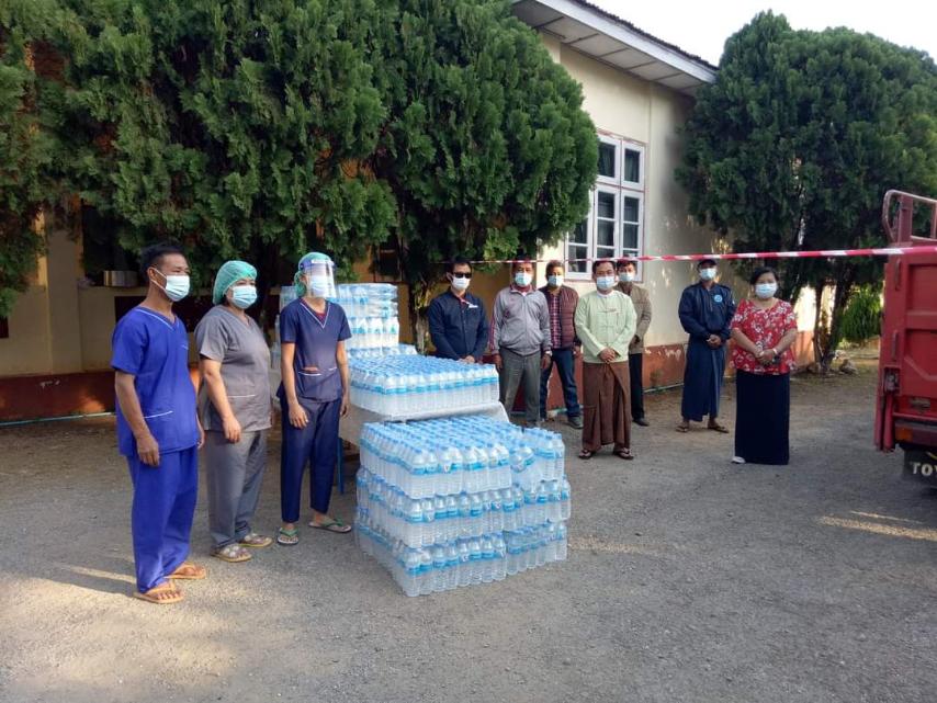 ထို့နောက်ဇီးပင်ကြီး ကုတင် (၅၀) ဆံ့ ဆေးရုံတွင် တာဝန်ထမ်းဆောင်နေသော ကျန်းမာရေး ဝန်ထမ်းများအား ရေသန့်ကတ်များ ပေးအပ်ခြင်းနှင့် တာဝန်ဆောင်ရွက်နေမှုများအပေါ် မြို့ပြည်သူများ ကိုယ်စားအသိအမှတ်ပြု ဂုဏ်ယူကြောင်း အားပေးစကားပြောကြားခဲ့ပြီး (၂၃) မိုင် စစ်ဆေးရေးဂိတ်တွင် တာဝန်ထမ်းဆောင်နေသည့် အုပ်ချုပ်ရေးအဖွဲ့များ၊ ရဲတပ်ဖွဲ့ဝင်များနှင့် တာဝန်ကျဌာနဆိုင်ရာများအား လုပ်ငန်းဆောင်ရွက်နေမှုများ အပေါ်လိုအပ်သည်များ မှာကြားကာ ကျန်းမာရေး ညွှန်ကြားချက်များနှင့်အညီ စနစ်တကျဖြင့် အထူးဂရုပြု ဆောင်ရွက်ကြစေရေး မှာကြားခဲ့သည်။