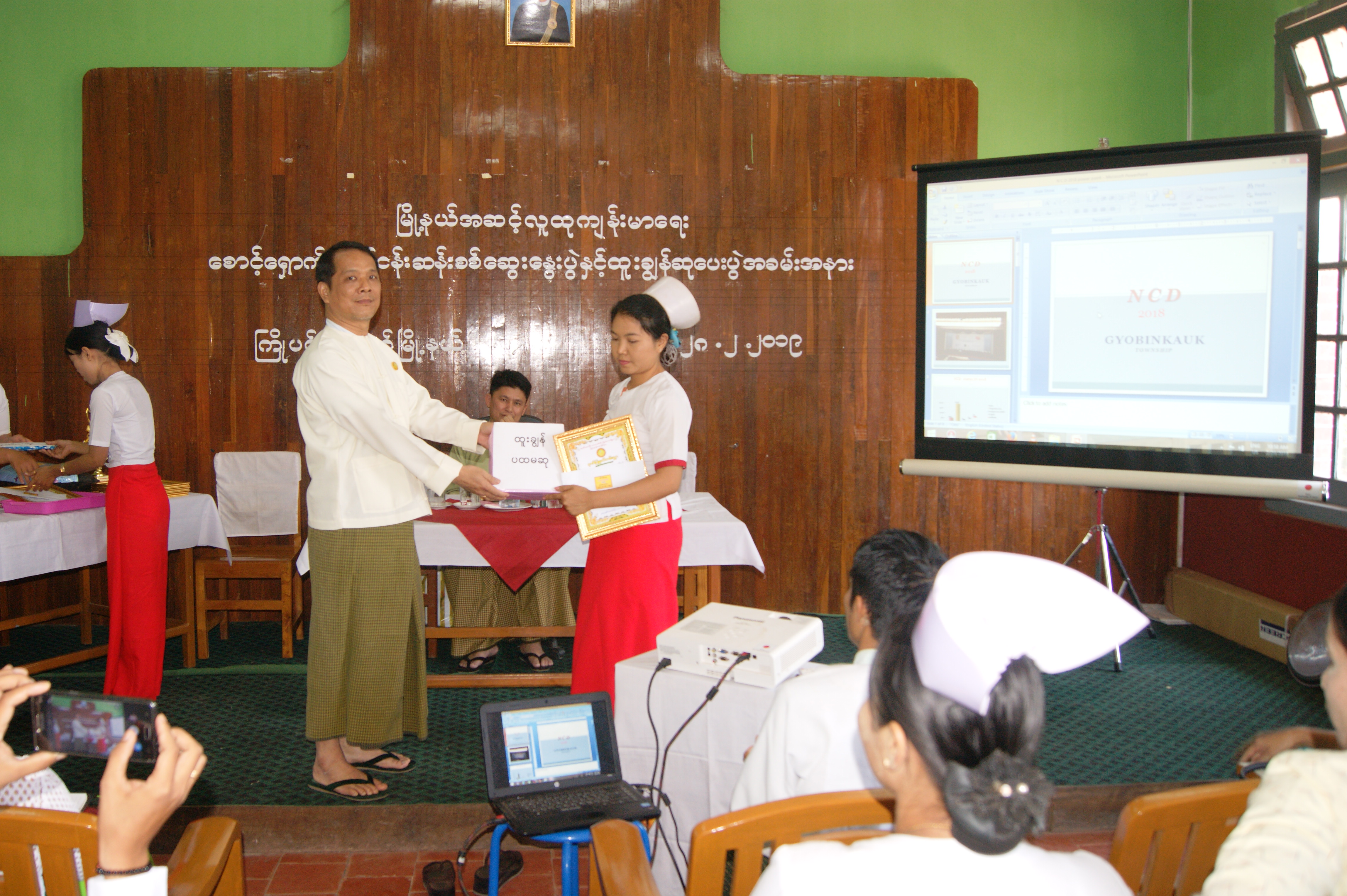 ထို့နောက် ပြည်သူ့ကျန်းမာရေး စောင့်ရှောက်မှုလုပ်ငန်းများကို ထူးချွန်အောင်မြင်စွာ ထမ်းဆောင်ခဲ့ကြသော ရပ်/ကျေး သူနာပြုဆရာမ ၇ ဦးနှင့် ကျန်းမာရေးဌာန ၃ ခုတို့အား ဆုများချီးမြှင့် ပေးအပ်ခဲ့ကြသည်။