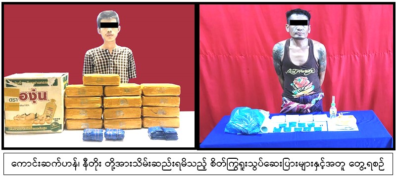 အလားတူ မတ် ၅ ရက် ညနေ ၆ နာရီတွင် မူးယစ်ဆေးဝါး တားဆီးနှိမ်နင်းရေးရဲတပ်ဖွဲ့မှ တပ်ဖွဲ့ဝင်များပါဝင်သော ပူးပေါင်းအဖွဲ့သည် မြိတ်မြို့နယ်၊ မြိတ်တောင်ကျေးရွာအုပ်စု၊ ကုန်းဖောက်ကျေးရွာတွင် ရဲခိုင် (ခ) ထီးဆိုင်ကို မသင်္ကာဖွယ် တွေ့ရှိသဖြင့် စစ်ဆေးရှာဖွေရာ စိတ်ကြွရူးသွပ်ဆေးပြား ၆,၀၀၀ ကိုလည်းကောင်း၊ ယင်းနေ့ညနေ ၃ နာရီခွဲတွင် မူးယစ်ဆေးဝါး တားဆီးနှိမ်နင်းရေးရဲတပ်ဖွဲ့မှ တပ်ဖွဲ့ဝင်များပါဝင်သော ပူးပေါင်းအဖွဲ့သည် မြောက်ဥက္ကလာပမြို့နယ်၊ ဈ-ရပ်ကွက်၊ သီရိရတနာ လက်ကားဈေးဝင်း အတွင်းရှိ ကားဂိတ်တွင် Toyota Probox မော်တော်ယာဉ်တစ်စီးနှင့်အတူ လူမဲ့တန်ဆာပစ္စည်း လာရောက်ထုတ်ယူသူ တင်ကိုဝင်း (ခ) ရာရှင်၊ ဇနီးဖြစ်သူ မသူဇာလွင် (ခ) မစိုး (ခ) ရှာဗန်းမီနှင့် သမီးဖြစ်သူ မတင်မိုးခိုင် (ခ) စိုက်သားဘာနူးတို့အား မသင်္ကာဖွယ်တွေ့ရှိသဖြင့် စစ်ဆေးရှာဖွေရာ ဘိန်းဖြူ သုည ဒသမ ၃၉၆ ကီလို သိမ်းဆည်းရမိခဲ့ပြီး ကွင်းဆက်အရ ညနေ ၅ နာရီတွင် သာကေတမြို့နယ်၊ အမှတ် (၁) အနော်မာရပ်ကွက်၊ အမှတ် (၄၇၇/ခ) နေ ကျော်သူရ (ခ) နူးမိုဟာမက်အား ၎င်း၏နေအိမ်၌လည်းကောင်း။