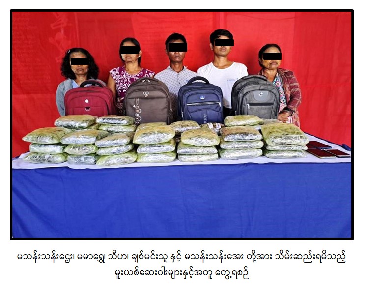 မူးယစ်ဆေးဝါး တားဆီးနှိမ်နင်းရေး ရဲတပ်ဖွဲ့ဝင်များပါဝင်သော ပူးပေါင်းအဖွဲ့သည် စက်တင်ဘာ ၃ ရက် ညနေ ၅ နာရီခွဲတွင် ပြင်ဦးလွင်မြို့နယ်၊ ဝက်ဝံကျေးရွာအုပ်စု၊ ဝက်ဝံကျေးရွာအနီးတွင် EXPRESS ခရီးသည်တင်မှန်လုံယာဉ်ကို ရပ်တန့်စစ်ဆေးရှာဖွေရာ ဘိန်းဖြူ သုည ဒသမ ၄၄ ကီလို၊ စိတ်ကြွရူးသွပ် ဆေးပြား ၃၂,၄၀၀ ကိုလည်းကောင်း၊ ထို့ပြင် ယင်းနေ့ ညနေ ၄ နာရီတွင် ပူးပေါင်းအဖွဲ့သည် ကွတ်ခိုင်မြို့၊ ရပ်ကွက်(၈)၊ ကွတ်ခိုင်-လားရှိုးသွား ကားလမ်းတွင် အိုက်ဆိုင်မောင်းနှင်ပြီး မအေအို လိုက်ပါလာသည့် ဆိုင်ကယ်ကို ရပ်တန့်စစ်ဆေးရှာဖွေရာ ဘိန်းဖြူ သုည ဒသမ ၁၁ ကီလို၊ စိတ်ကြွရူးသွပ်ဆေးပြား ၂,၀၀၀ ကို လည်းကောင်း၊ ထို့ပြင် ယင်းနေ့ မွန်းလွဲ ၁၂ နာရီခွဲတွင် ပူးပေါင်းအဖွဲ့သည် သတင်းအရ မိတ္ထီလာမြို့၊ အောင်ဇေယျာရပ်ကွက်ရှိ ကားဂိတ်တွင် မသန်းသန်းဌေး၊ မမာရွှေ၊ သီဟနှင့် ချစ်မင်းသူတို့ကို စစ်ဆေး ရှာဖွေရာ ဘိန်းဆီခဲ ကီလို ၃၀ ၊ ဘိန်းစိမ်း ၁၆ ကီလိုသိမ်းဆည်းရမိခဲ့ပြီး ကွင်းဆက်အရ မွန်းလွဲ ၁ နာရီတွင် မိတ္ထီလာမြို့၊ ပေါက်ချောင်း(တိုးချဲ့)ရပ်ကွက်၊ နယ်မြေ(၁၃)ရှိနေအိမ်တွင် မူးယစ်ဆေးဝါးများ သယ်ဆောင်ခိုင်းသူ မသန်းသန်းအေးကို ဆက်လက်ဖမ်းဆီးရမိခဲ့သဖြင့် ၎င်းတို့အား မူးယစ်ဆေးဝါးနှင့်စိတ်ကို ပြောင်းလဲစေ သောဆေးဝါးများဆိုင်ရာဥပဒေအရ အရေးယူထားကြောင်း သိရသည်။