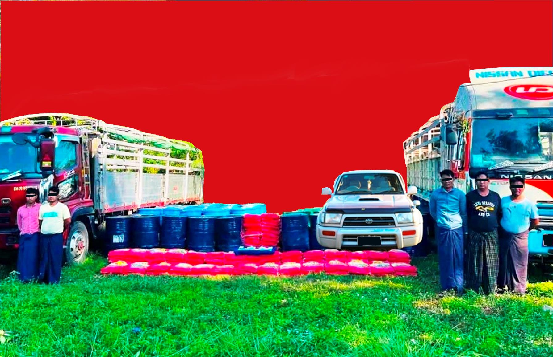 အလားတူ မူးယစ်ဆေးဝါးတားဆီး နှိမ်နင်းရေးရဲတပ်ဖွဲ့ဝင်များ ပါဝင်သော ပူးပေါင်းအဖွဲ့သည် နိုဝင်ဘာ ၁၀ ရက် ညနေ ၅ နာရီခွဲတွင် လားရှိုးမြို့နယ်၊ ခါးသျှိကျေးရွာအနီး၊ တန့်ယန်း-လားရှိုးသွား ကားလမ်းတွင် ကျင်းဟော် မောင်းနှင်လာ သည့် Toyota Alphard အမျိုးအစားမော်တော်ယာဉ်ကို ရပ်တန့်စစ်ဆေးရှာဖွေရာ ယာဉ်ပေါ်မှ ဘိန်းဖြူ ၂ ဒသမ ၂ ကီလို ကိုလည်းကောင်း၊ ထို့အတူ မူးယစ်ဆေးဝါး တားဆီးနှိမ်နင်းရေးရဲ တပ်ဖွဲ့ဝင်များ ပါဝင်သော ပူးပေါင်းအဖွဲ့သည် နိုဝင်ဘာ ၁၀ ရက် ည ၇နာရီခွဲတွင် ရပ်စောက်မြို့နယ်၊ ပါမဲကျေးရွာအုပ်စု၊ ညောင်ပင်သာ ကျေးရွာအနီး၊ ရပ်စောက်-ကျောက်ဂူသွားကားလမ်းတွင် နိုင်ဝင်းထွန်း မောင်းနှင် လာသည့် FUSO အမျိုးအစား(၁၂)ဘီး မော်တော်ယာဉ်နှင့် စိုင်းမျိုး မောင်းနှင်ပြီး တင်ကိုကိုဝင်း လိုက်ပါလာသည့် Nissan အမျိုးအစား(၁၂)ဘီးမော်တော်ယာဉ်တို့ကို ရပ်တန့်စစ်ဆေးရှာဖွေရာ FUSO အမျိုးအစား မော်တော်ယာဉ်ပေါ်မှ Toluene လီတာ ၂,၇၀၀ ၊ Ethyl acetate လီတာ ၃,၁၂၀ ၊ Calcium Carbonate ၂,၄၇၅ ကီလိုနှင့် Nissan အမျိုးအစားမော်တော်ယာဉ်ပေါ်မှ Toluene လီတာ ၇၅၀ ၊ Coloroform လီတာ ၄,၈၀၀၊ Calcium Carbonate ကီလို ၂,၅၀၀ တို့ကို သိမ်းဆည်း ရမိခဲ့ပြီး စစ်ဆေးပေါ်ပေါက်ချက် အရ ည ၁၁ နာရီတွင် တောင်ကြီးမြို့၊ စဝ်စံထွန်းရပ်ကွက်၊ ဗိုလ်ချုပ် လမ်းရှိ ဟိုတယ်တွင် ထိန်းချုပ်ဓာတု ပစ္စည်းများသယ်ဆောင်ခိုင်းသူ သန်းလင်း(ခ)အရှည်ကြီးနှင့် နှင်းကိုကို တို့အား Toyota Surf အမျိုးအစား မော်တော်ယာဉ်တစ်စီးနှင့်အတူ ဖမ်းဆီးရမိခဲ့သဖြင့် ၎င်းတို့အား မူးယစ်ဆေးဝါးနှင့်စိတ်ကို ပြောင်းလဲစေသောဆေးဝါးများဆိုင်ရာ ဥပဒေအရအရေးယူ ထားကြောင်း သိရသည်။
