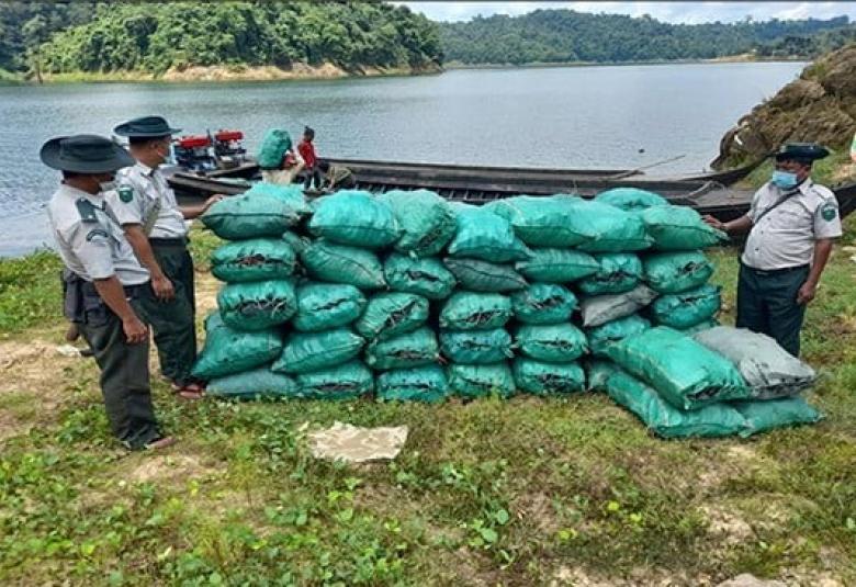 ပြည်သူပူးပေါင်းပါဝင်မှုဖြင့် လူထုအခြေပြု စောင့်ကြပ်ကြည့်ရှုသတင်းပို့စနစ် - CMRS ဖြင့် သတင်းပေးပို့ချက်အရ စက်တင်ဘာ ၄ ရက်မှ ၆ ရက်အထိ သစ်တောဦးစီးဌာနမှဝန်ထမ်းများ၊ မြန်မာနိုင်ငံရဲတပ်ဖွဲ့ဝင်များ၊ သစ်တောလုံခြုံရေးရဲတပ်ဖွဲ့ဝင်များ ပါဝင်သော ပူးပေါင်းအဖွဲ့သည် မုံရွာ- ယာကြီး- ကလေးဝကားလမ်း (၅၆)မိုင်အနီး မော်တော်ယာဉ် (၁)စီးပေါ်မှ တရားမဝင် ပိတောက်ခွဲသား (၂)တန်၊ ကလေးဝမြို့နယ်၊ ဆင်အိုင်မကျေးရွာ တောင်ဘက်အင်တိုင်းကုန်းကြိုး ဝိုင်းအစပ်မှ တရားမဝင်အင်သစ် (၅)တန်၊ ကလေးဝ-ရေဦး ကားလမ်းမိုင်တိုင် အမှတ် (၁၀၂/၁) မိုင်အနီး မော်တော်ယာဉ်(၂)စီးပေါ်မှ တရားမဝင်အင်သစ် (၁၆)တန်၊ မောက္ကတော်-အောင်ချမ်းသာ ကားလမ်းဘေးနေရာတွင် တာယာဘီးတပ်လှည်း(၄)စီးပေါ်မှ တရားမဝင် ကျွန်း/ အင်/ ကညင်သစ် (၂၂)တန်၊ မင်းကင်းမြို့နယ်၊ ရှဲကျေးရွာအနီးမှ တရားမဝင်အင်သစ် (၉)တန်၊ မတ္တရာမြို့နယ်၊ မြစ်ကမ်းကျေးရွာအုပ်စု၊ မြို့ဒင်ကျေးရွာအနီးမှ တရားမဝင် ကျွန်း/ ပျဉ်းကတိုး/ အင်သစ်/ခွဲသား (၁၇)တန်၊ လွှဝိုင်း(၁)ဝိုင်းနှင့်အတူ ဒလိမ့်တုံး(၂)ခု၊ အုတ်တွင်းမြို့နယ်၊ ရေသိုးကျေးရွာအနောက် ဘက်လယ်ကွင်းစပ်အနီး မော်တော်ယာဉ်ပေါ်မှ တရားမဝင် ကျွန်း/ပျဉ်းကတိုးခွဲသား (၄)တန်၊ ကျောက်တံခါးမြို့နယ်၊ ရဲနွယ်ကြိုးဝိုင်း အကွက်အမှတ်(၉၄)နှင့် ရဲနွယ်တိုးချဲ့ကြိုးဝိုင်းအတွင်းမှ တရားမဝင်ကျွန်းခွဲသား (၃)တန်၊ မီးသွေး (၆၁)တန်၊ စက်လှေ(၂)စီးနှင့် ဆက်စပ်ပစ္စည်းများ၊ ဂွမြို့နယ်၊ ဒေသအခေါ် ဒိုးခြုံပေါက်၊ ကျေက်ကွင်းပေါက်၊ (၁၅)မိုင်ပေါက်၌ တရားမဝင် တောင်သရက်ခွဲသား (၉)တန်အား ဖမ်းဆီးရမိခဲ့သည်။