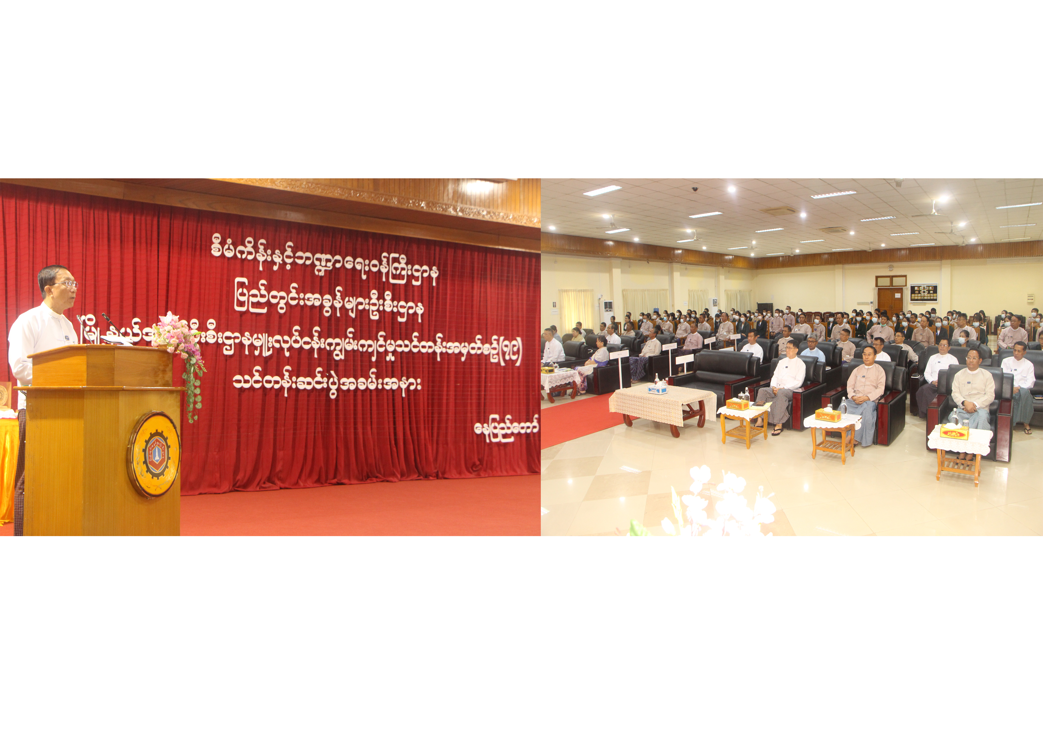 နိုင်ငံတော်အတွက် ရသင့်ရထိုက်သည့်အခွန်ငွေများ လျော့နည်းလွတ်ကင်းမှုမရှိဘဲ ဥပဒေ နှင့်အညီ အပြည့်အဝကောက်ခံရရှိနိုင်ရေး အခွန်ဝန်ထမ်းများ၏ လုပ်ငန်းစွမ်းဆောင်ရည် မြှင့်တင်ပေးရန် ရည်ရွယ်ချက်ဖြင့် ဖွင့်လှစ်ခဲ့သည့် မြို့နယ်အခွန်ဦးစီးဌာနမှူးလုပ်ငန်းကျွမ်းကျင်မှု သင်တန်း အမှတ်စဉ် (၇၉) သင်တန်းဆင်းပွဲအခမ်းအနားကို ယနေ့နံနက် ၉ နာရီတွင် နေပြည်တော်ရှိ စီမံကိန်းနှင့် ဘဏ္ဍာရေး ဝန်ကြီးဌာန ပြည်တွင်းအခွန်များဦးစီးဌာန၌ ကျင်းပသည်။