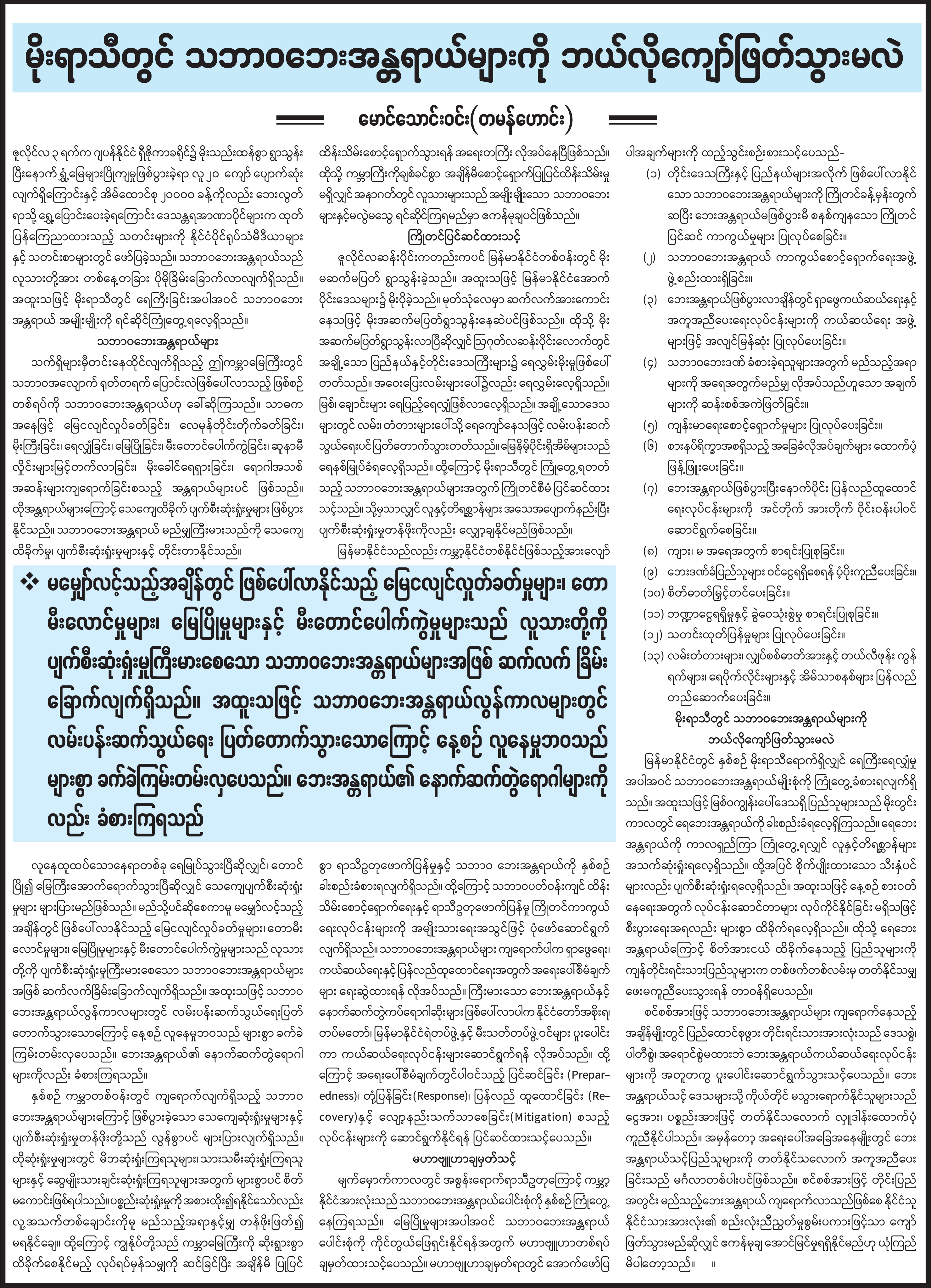 မိုးရာသီတွင် သဘာဝဘေးအန္တရာယ်များကို ဘယ်လိုကျော်ဖြတ်သွားမလဲ
