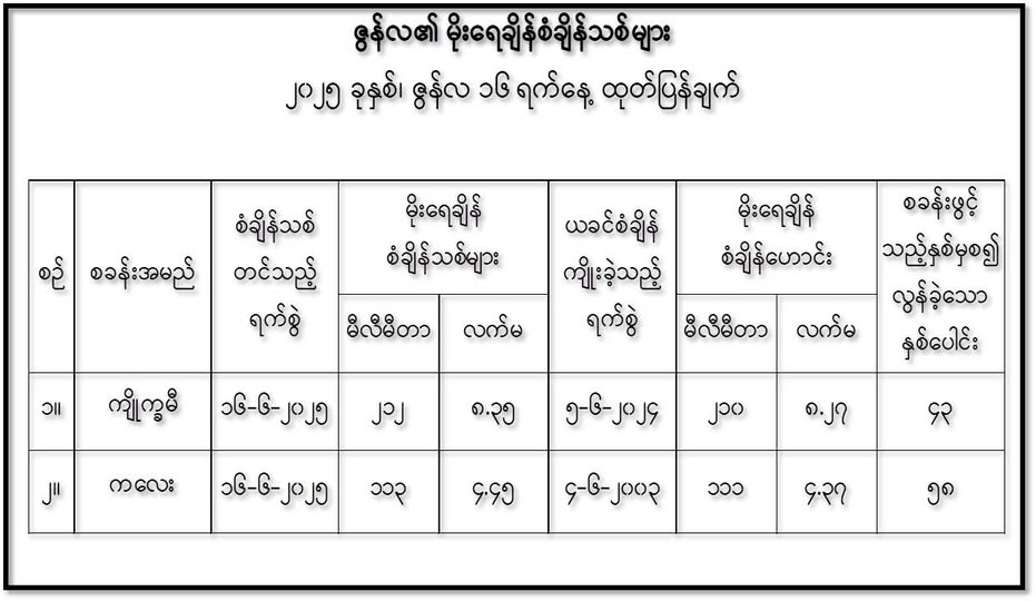 ၂၀၂၅ ခုနှစ်၊ ဇွန်လ ၁၆ ရက်နေ့ မြန်မာစံတော်ချိန် ၀၉:၃၀ နာရီအချိန် တိုင်းထွာချက်များအရ ဇွန်လ၏ ၂၄ နာရီအတွင်း ရွာသွန်းခဲ့သော မိုးရေချိန်စံချိန်သစ်များ