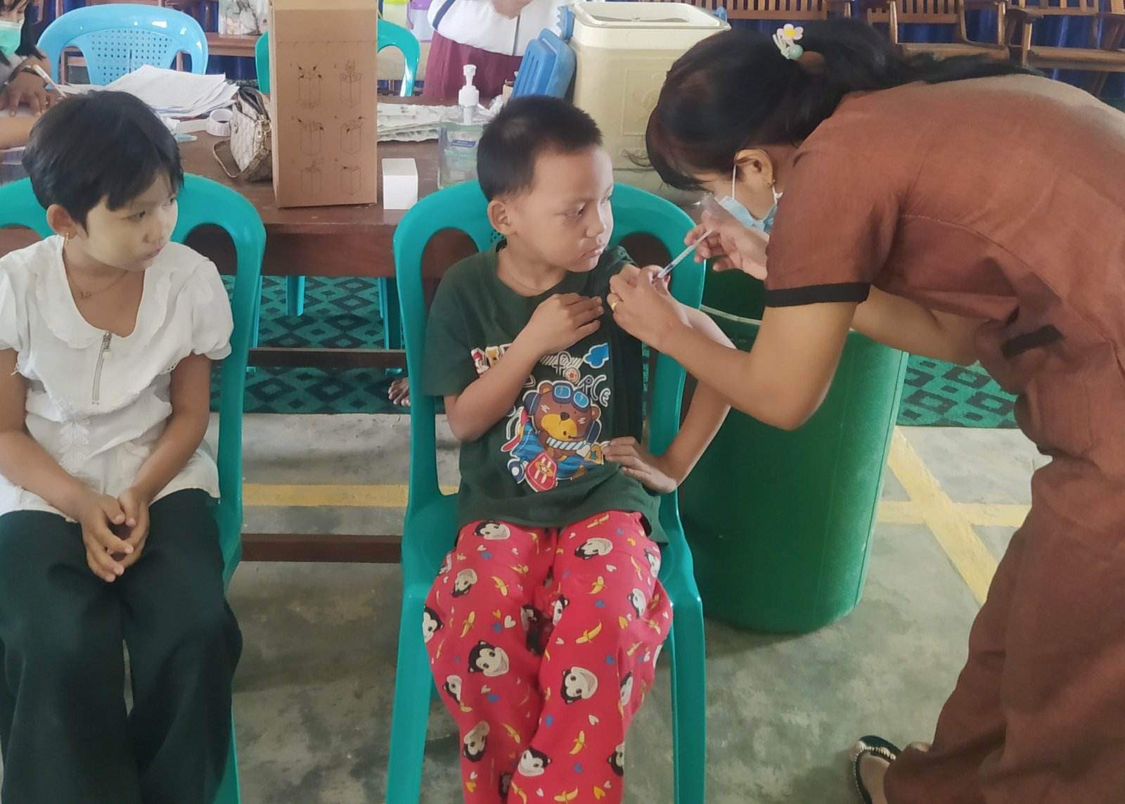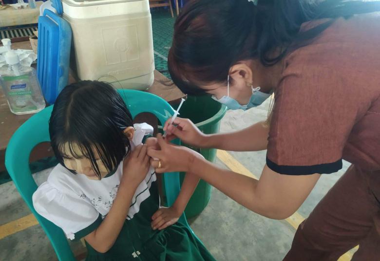 ထိုသို့ ကိုဗစ်-၁၉ ထပ်ဆောင်ကာကွယ်ဆေး(Booster) ထိုးနှံရာတွင် မြို့နယ်စီမံအုပ်ချုပ်ရေးအဖွဲ့ ၏ကြီးကြပ်မှုဖြင့် မြို့နယ်ကျန်းမာရေးဝန်ထမ်းများက အခြေခံပညာကျောင်းများအလိုက် စုရပ်များပြုလုပ်၍ ထိုးနှံပေးရာ အခြေခံပညာကျောင်းပေါင်း (၁၉၀)ရှိ အသက်(၅)နှစ်မှ (၁၂)နှစ်အထိ ကျောင်းသားကျောင်းသူ(၁၈၇၅၀)အား ထပ်ဆောင်းကာကွယ်ဆေး ထိုးနှံပြီးစီးပြီဖြစ်ကြောင်း မြို့နယ်ကိုဗစ်-၁၉ ထိန်းချုပ်ရေးနှင့် အရေးပေါ်တုံ့ပြန်ရေး ကော်မတီထံက သိရသည်။
