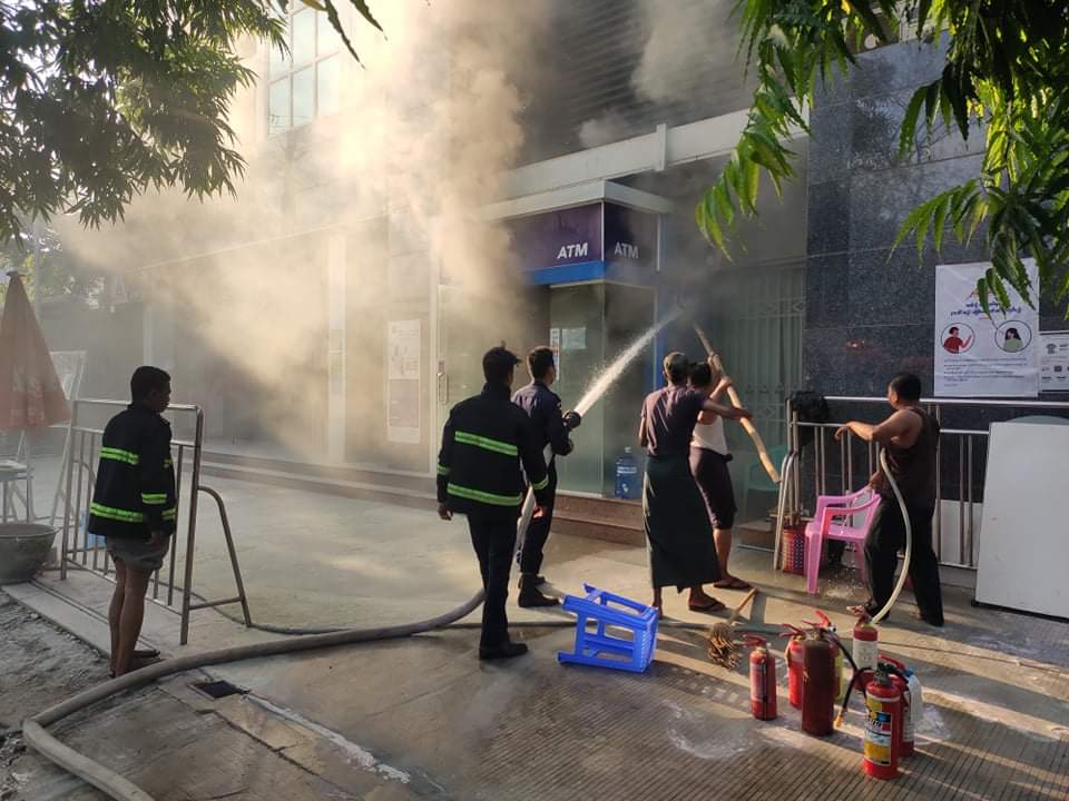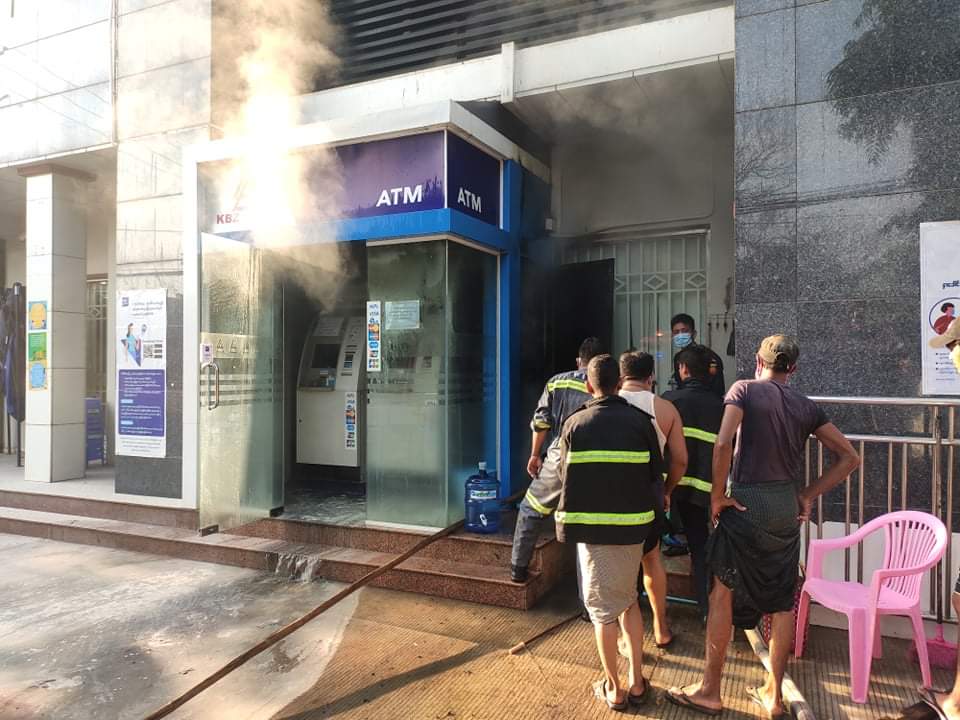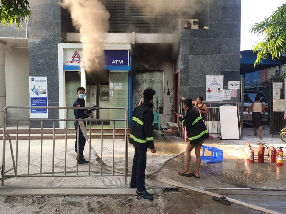 မီးလောင်ကျွမ်းမှုနှင့် ပတ်သက်၍ ကမ္ဘောဇဘဏ်(၁)ATM ငွေထုတ်စက်တွင် တပ်ဆင်ထားသော Air-Con Safe Guard အလုပ်မလုပ်ရာမှ အပူလွန်ကဲပြီး လောင်ကျွမ်းခဲ့ခြင်းဖြစ်ပြီး၊ 70 V Battery (၈)လုံး တန်ဖိုး ၈၀ဝ၀ဝ၊ Air-Con(၁)လုံး တန်ဖိုး ၁၀ဝ၀ဝ၀ နှင့် 220 V အင်ဗာတာ(၁)လုံး တန်ဖိုး ၃၀ဝ၀ဝ စုစုပေါင်းခန့်မှန်းတန်ဖိုး ၂၁၀ဝ၀ဝ ခန့် ဆုံးရှုံးလောင်ကျွမ်းကာ ကမ္ဘောဇဘဏ်(၁)၏ မန်နေဂျာအား မကွေးမြို့ အမှတ်(၂)နယ်မြေရဲစခန်းမှ အမှုဖွင့်အရေးယူနိုင်ရေး စစ်ဆေးဆောင်ရွက်လျက်ရှိကြောင်း သိရသည်။