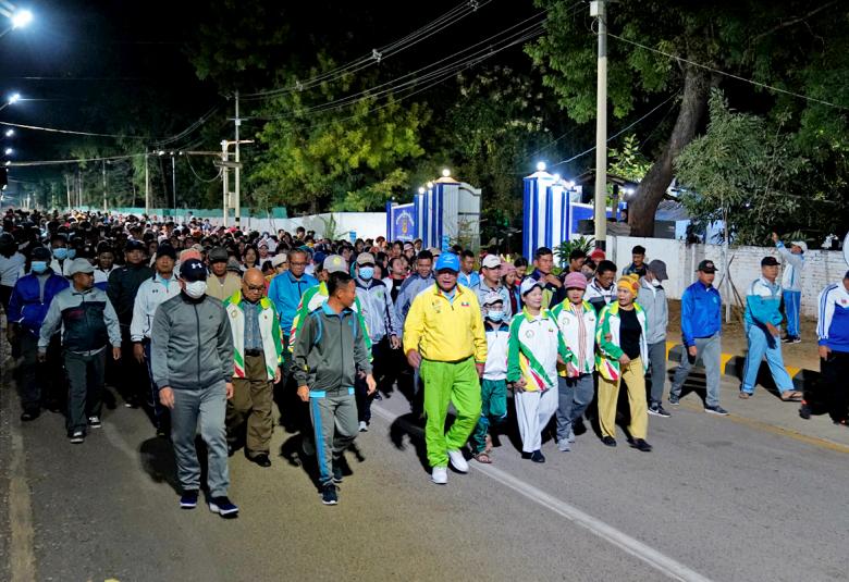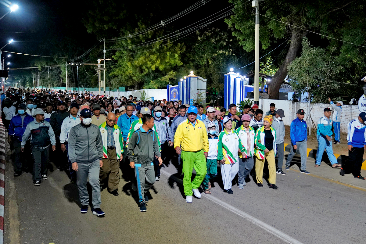 ရှေးဦးစွာ တိုင်းဒေသကြီး ဝန်ကြီးချုပ်နှင့်အဖွဲ့သည် စုပေါင်းလမ်းလျှောက်ပွဲ စုရပ်ဖြစ်သည့် တိုင်းဒေသကြီး ရဲတပ်ဖွဲ့မှူးရုံးရှေ့ ဗိုလ်ချုပ်လမ်းမကြီးမှ စတင်၍ လမ်းငါးသွယ်အဝိုင်းမှ တောင်တွင်းကြီး လမ်းမတစ်လျှောက် မကွေးတက္ကသိုလ်ဝင်းအထိ တပျော်တပါး စုပေါင်းလမ်းလျှောက်ခဲ့ကြပြီး မကွေးတက္ကသိုလ် ဘွဲ့နှင်းသဘင်ခန်းမရှေ့တွင် ကိုယ်လက်လှုပ်ရှား ကာယလေ့ကျင့်ခန်း အတွဲ-၁ ၊ အတွဲ ၂ နှင့် Physical fitness dance များ တစုတဝေး စုပေါင်းကိုယ်လက်ကြံခိုင်ရေး လေ့ကျင့်ခန်းများ ပြုလုပ်ခဲ့ကြသည်။ ထို့နောက် စုပေါင်းလမ်းလျှောက်ပွဲတွင် ပါဝင်ခဲ့ကြသူများအား တိုင်းဒေသကြီး အစိုးရအဖွဲ့မှ မကွေးတက္ကသိုလ် ဘွဲ့နှင်းသဘင်ခန်းမရှေ့တွင် ဗလာမပါ ကံစမ်းမဲများ မဲဖောက်ပေးကာ ကောက်ညှင်းပေါင်းနှင့် သောက်ရေသန့်ဘူးများ ဝေငှပေးသည်။