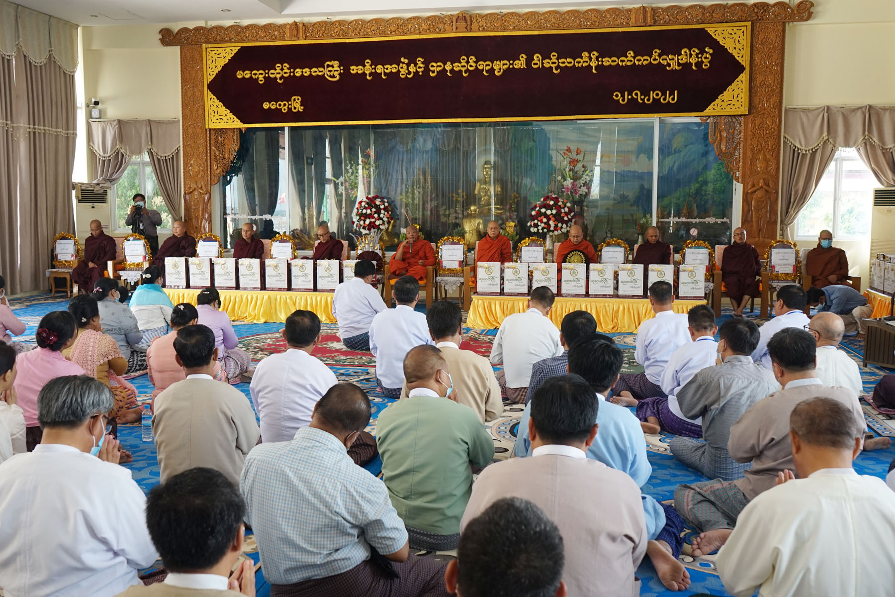 ထို့နောက် နိုင်ငံတော်သံဃ မဟာနာယကအဖွဲ့ဝင်၊ မကွေးမြို၊ မဟာဓမ္မိကာရာမတိုက် ပဓာနနာယက ဘဒ္ဒန္တဥတ္တရ ဆရာတော်ကြီးထံမှ အနုမောဒနတရားနာယူ၍ လှူဒါန်းမှုအစုစုအတွက် ရေစက်သွန်းချ အမျှပေးဝေပြီး ဗုဒ္ဓသာသနံစိရံတိဌတု သုံးကြိမ်ရွတ်ဆို၍ အခမ်းအနားကို ရုတ်သိမ်းကာ ဆရာတော်၊ သံဃာတော်များအား နေ့ဆွမ်းဆက်ကပ် လှူဒါန်းသည်။ အဆိုပါ အခမ်းအနားတွင် သင်္ကန်း ၄၆၂ စုံကို စုပေါင်းဆက်ကပ်လှူဒါန်းခဲ့ကြောင်း သိရသည်။