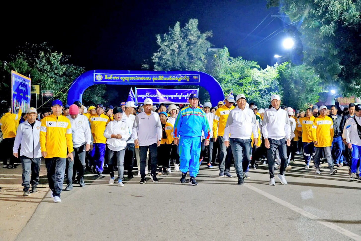 ဦးစွာ တိုင်းဒေသကြီးဝန်ကြီးချုပ်က သေနတ်ပစ်ဖောက်၍ တာလွှတ်ပေးရာ ပါဝင်ဆင်နွှဲကြသူများသည် တိုင်းအားကစားကွင်းမှစတင်၍ ပြည်တော်သာလမ်း၊ ထိုမှတစ်ဆင့် မြို့ပတ်လမ်းတစ်လျှောက်၊ အဝေရာလမ်းအတိုင်း စုပေါင်းလမ်းလျှောက်၍ တိုင်းအားကစားကွင်းအတွင်း ပြန်လည်ဝင်ရောက်ကာ စုပေါင်းကိုယ်လက်ကြံ့ခိုင်ရေး လေ့ကျင့်ခန်း အတွဲ(၁) +(၂) နှင့် Physical Fitness Dance လေ့ကျင့်ခန်းများကို စုပေါင်းလှုပ်ရှားဆောင်ရွက်ခဲ့ကြပြီး တိုင်းဒေသကြီးဝန်ကြီးချုပ်နှင့် တာဝန်ရှိသူများက စုပေါင်းလမ်းလျှောက်သူများအား စားသောက်ဖွယ်ရာမုန့်နှင့် အချိုရည်ဘူးများဝေငှပေးသည်။