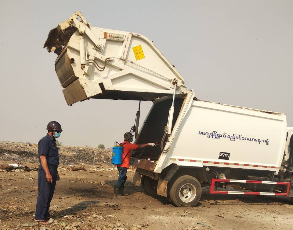 “Quarantine Camp ထဲက အကာအကွယ်ဝတ်စုံပြည့် ဝတ်ဆင်ထားသူတွေက အမှိုက်တွေကို စည်ပင်ကားပေါ် တင်ပေးပါတယ်။ အမှိုက်ကျင်းရောက်ရင် ကားပေါ်ကနေ ဟိုက်ဒရောလစ်စနစ်နဲ့လှန်ချပြီး မီးရှို့ဖျက်ဆီးပါတယ်။ အခုကာလ မှာ အမှိုက်သိမ်းပြီး မီးရှို့တာ သုံးကြိမ်ရှိသွားပါပြီ ” ဟု မကွေးစည်ပင် ဒုတိယဦးစီးမှူး ဦးအောင်မျိုးသိန်းက ပြောသည်။