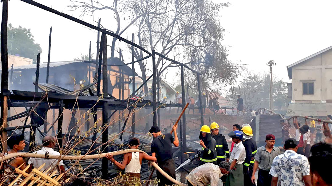မီးလောင်ကျွမ်းမှုဖြစ်ပွားရာသို့  မကွေးတိုင်းဒေသကြီးမီးသတ်ဦးစီးမှူး ဦးအောင်ဝင်းစိန်၊ မြို့နယ်အုပ်ချုပ်ရေး မှူး ဦးမြင့်လွင်တို့၏ ကြီးကြပ်မှုဖြင့် ခရိုင်နှင့်မြို့နယ်မီးသတ်တပ်ဖွဲ့များ၊ အရန်မီးသတ်တပ်ဖွဲ့ဝင်များ၊ ရပ်ကွက် အုပ်ချုပ်ရေးမှူး နှင့်  ပြည်သူများက  မီးသတ်ယာဉ် ရှစ်စီး၊ ရေသယ်ယာဉ် ကိုးစီး၊ အထောက်အကူပြုယာဉ် သုံးစီး တို့နှင့် အတူ ဝိုင်းဝန်းငြှိမ်းသတ်ရာ ညနေ ၅ နာရီ ၄၅ခန့်တွင် မီးညွန့်ကျိုးခဲ့ပြီး၊ ၅နာရီ ၅၅မိနစ်ခန့်တွင် မီးငြိမ်းခဲ့သည်။