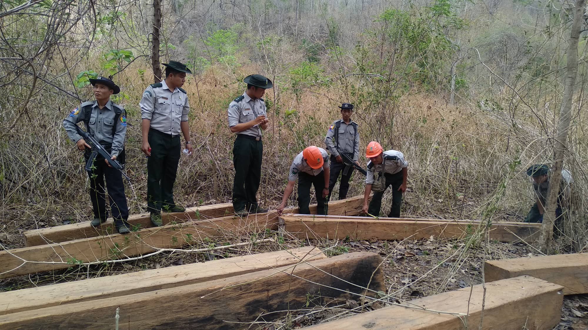 သစ်တောဉီးစီးဌာနအနေဖြင့် တရားမဝင်သစ်နှင့် သစ်တောထွက်ပစ္စည်းများ ရှာဖွေဖော်ထုတ် ဖမ်းဆီးလျက်ရှိရာ သစ်တောဦးစီးဌာနမှဝန်ထမ်းများ၊ မြန်မာနိုင်ငံရဲတပ်ဖွဲ့ဝင်များ၊ ကျေးရွာအုပ်ချုပ် ရေးအဖွဲ့ဝင်များနှင့် သစ်တောလုံခြုံရေးရဲတပ်ဖွဲ့ဝင်များ ပါဝင်သောပူးပေါင်းအဖွဲ့သည် မေ ၂ ရက် တွင် မကွေးတိုင်းဒေသကြီး သရက်ခရိုင် မင်းတုန်းမြို့နယ် မင်းတုန်းရိုးမကြိုးဝိုင်း၊ အကွက်အမှတ် (၈) ကျောက်ကြီးချောင်းဖျားနေရာမှ ကျွန်းခွဲသား (၁၉) ချောင်း (၃ ဒသမ ဝ၀၁၈) တန် ဖမ်းဆီး ရမိခဲ့ကြောင်းသိရသည်။