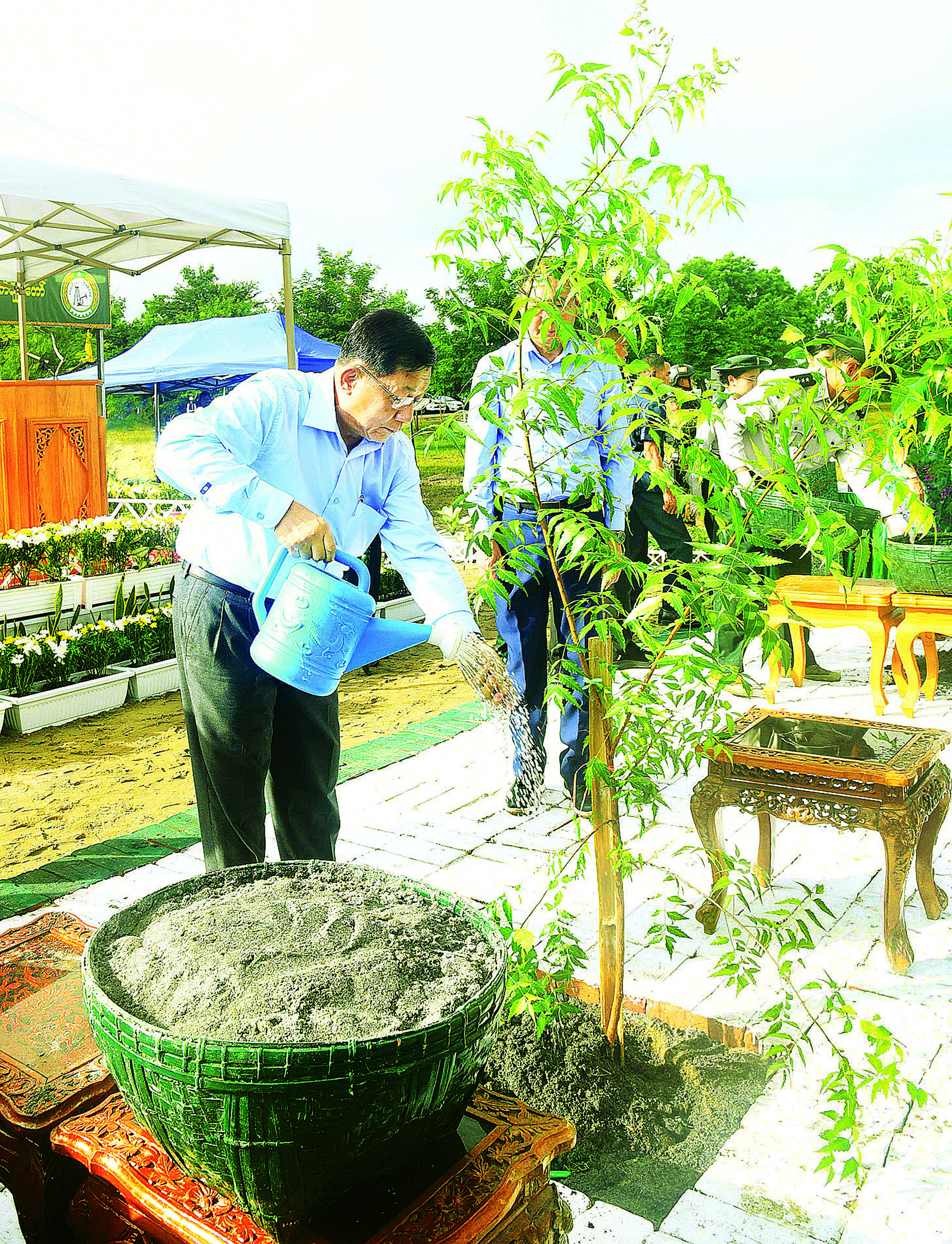 ထို့နောက် နိုင်ငံတော်လုံခြုံရေးနှင့် အေးချမ်းသာယာရေးကော်မရှင်ဥက္ကဋ္ဌနှင့် ဇနီးတို့က တမာပျိုးပင်အား သတ်မှတ် နေရာများတွင် ဦးဆောင်စိုက်ပျိုးပေးကြသည်။