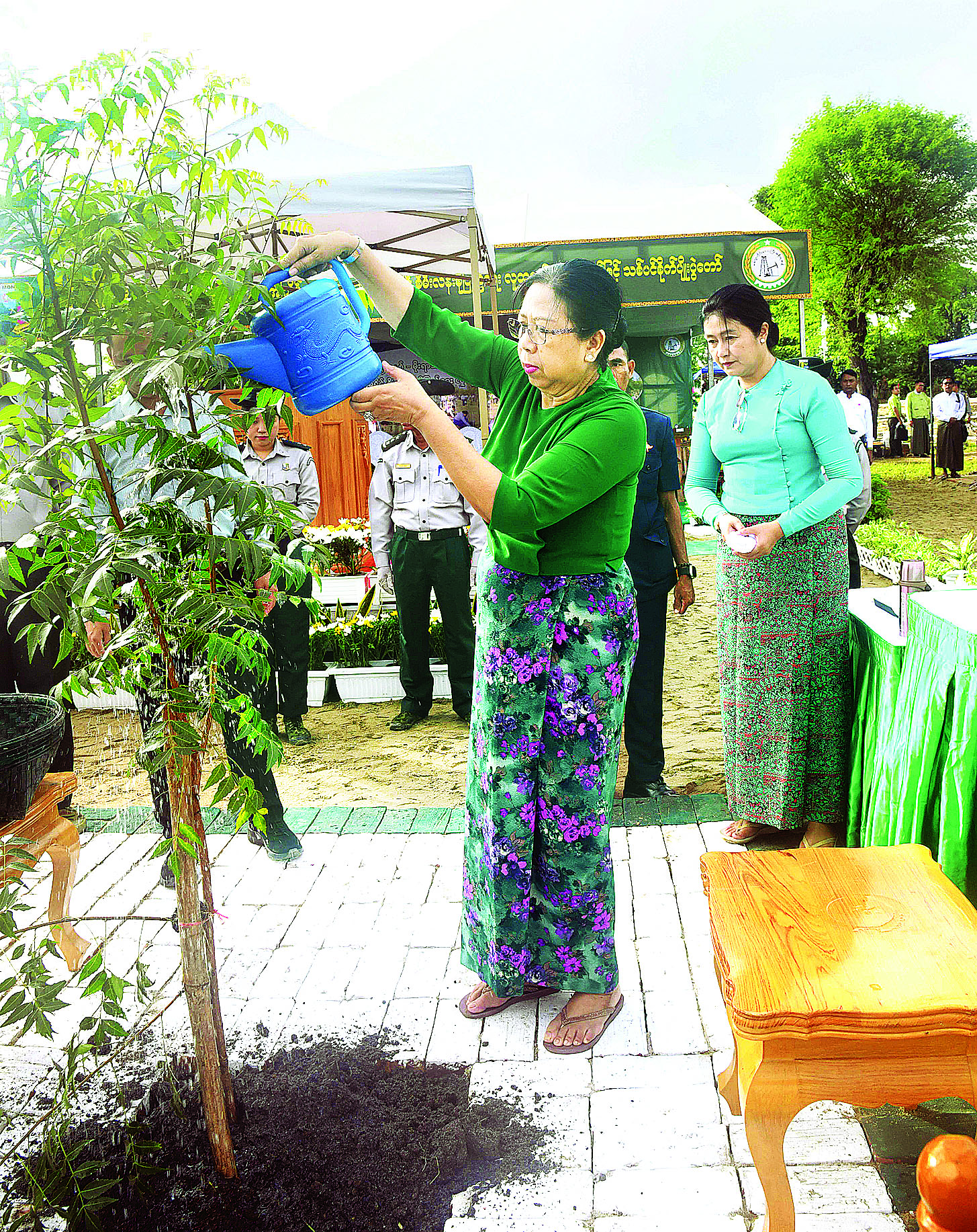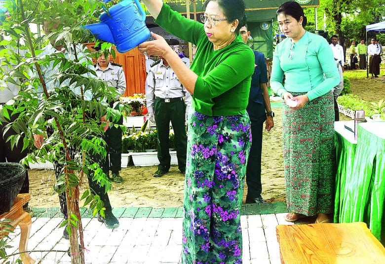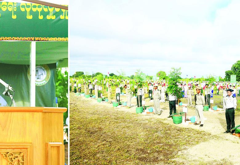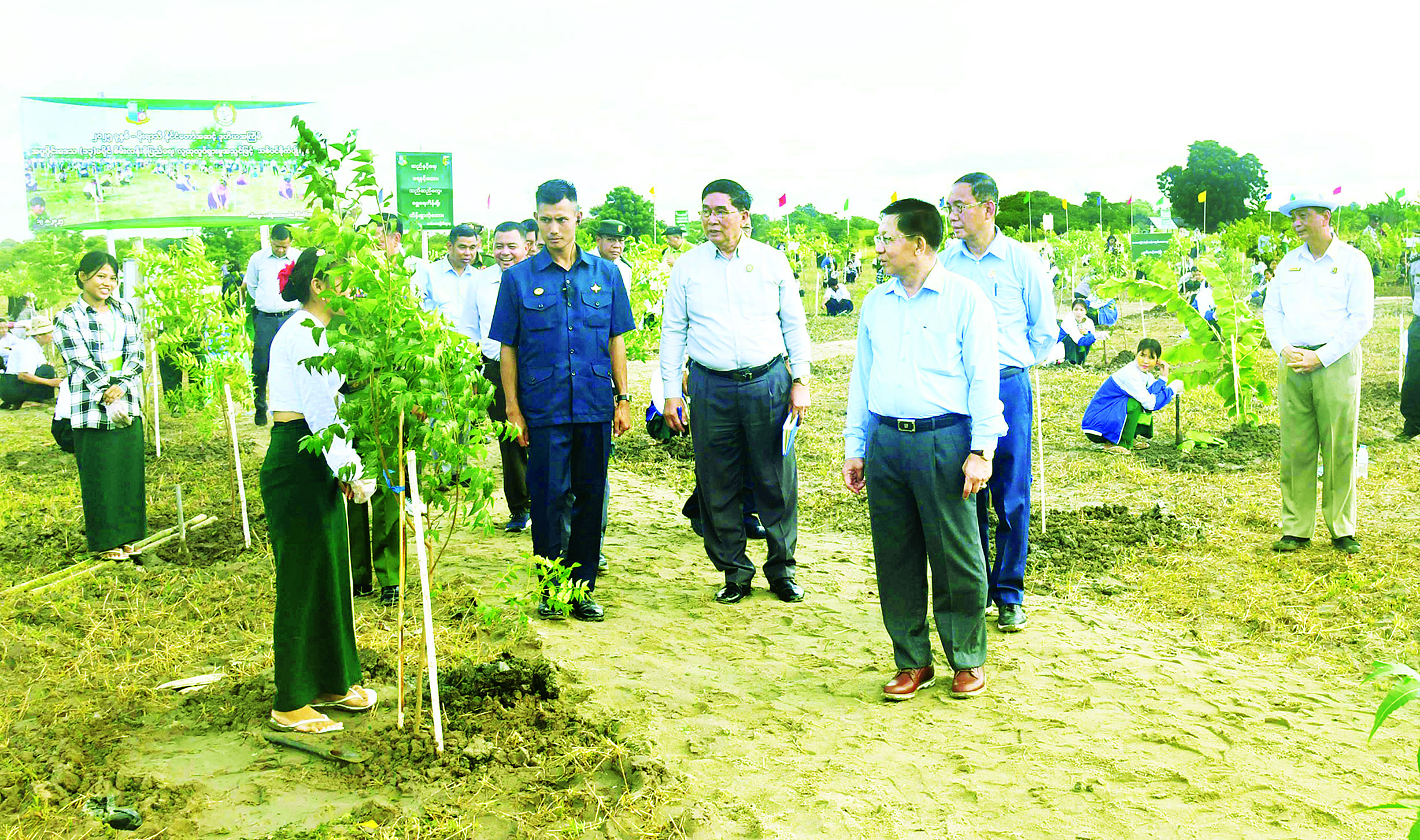 ယင်းနောက် အခမ်းအနားသို့တက်ရောက်လာကြသည့် ကော်မရှင်အတွင်းရေးမှူး၊ တွဲဖက်အမှုဆောင်ချုပ် ဗိုလ်ချုပ်ကြီး ရဲဝင်းဦး၊ ပြည်ထောင်စုဝန်ကြီး ဦးမင်းနောင်၊ ဦးခင်မောင်ရီ၊ ဒေါက်တာ ချာလီသန်း၊ မကွေးတိုင်း ဒေသကြီး ဝန်ကြီးချုပ် ဦးတင့်လွင်၊ ကာကွယ်ရေးဦးစီးချုပ်ရုံးမှ အဆင့်မြင့်တပ်မတော်အရာရှိကြီးများ၊ အလယ်ပိုင်း တိုင်းစစ် ဌာနချုပ် တိုင်းမှူး၊ မကွေးခရိုင်အတွင်းရှိ တိုင်းဒေသကြီးအဆင့်၊ မြို့နယ်အဆင့် ဌာနဆိုင်ရာတာဝန်ရှိသူ များ၊ မြို့မိမြို့ဖများ၊ ဒုတိယဝန်ကြီးများ၊ ဆရာ ဆရာမများ၊ ကျောင်းသား၊ ကျောင်းသူများနှင့် တာဝန်ရှိသူများသည် ပျိုးပင်များကို တစ်ပြိုင်တည်း စိုက်ပျိုးပေးကြသည်။