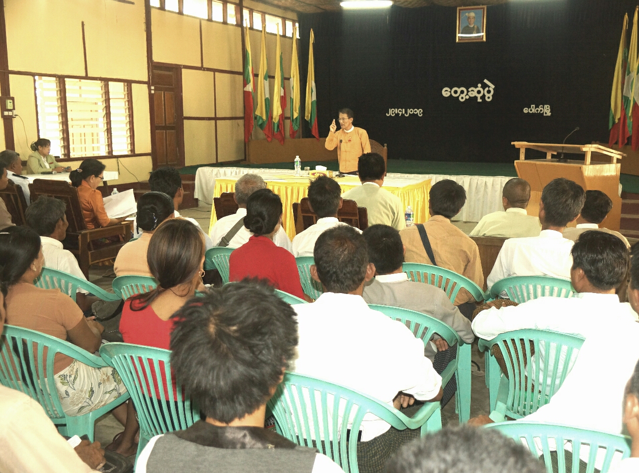 ဆက်လက်၍ တိုင်းဒေသကြီး လွှတ်တော်ကိုယ်စားလှယ် ဒေါ်မြင့်စန်းက တက်ရောက်လာကြသည့် ဒေသခံ ပြည်သူများ မှတ်ပုံတင်၊ အိမ်ထောင်စုစာရင်းနှင့် ပတ်သက်၍ လုပ်ကိုင်ဆောင်ရွက်ရာတွင် အခက်အခဲများရှိပါက ပွင့်ပွင့်လင်းလင်းဆွေး နွေးကြရန်ဖြစ်ကြောင်း၊ ထို့နောက် မြို့နယ်အလုပ်သမားလူဝင်မှု ကြီးကြပ်ရေးနှင့် ပြည်သူ့အင်အားဝန်ကြီးဌာန မြို့နယ်ဦးစီးမှူး ဦးသောင်းဝင်းက မှတ်ပုံတင်ကတ်၊ အိမ်ထောင်စုစာရင်း လုပ်ကိုင်လိုသူများ သိရှိစေရန် လိုအပ်သည့် အချက်အလက်များကို အသေးစိတ်ရှင်းလင်း ပြောကြားပြီး တက်ရောက်လာကြသည့် ရပ်ကွက်၊ ကျေးရွာ အုပ်စုများမှ ဒေသခံပြည်သူများက မှတ်ပုံတင်၊ အိမ်ထောင်စု စာရင်းနှင့်ပတ်သက်၍ လုပ်ကိုင်ရာတွင် ကြုံတွေ့နေရသည့်အခက်အခဲများကို မေးမြန်းဆွေးနွေးကြရာ ဝန်ကြီးနှင့်ဌာနဆိုင်ရာတာဝန်ရှိသူများ ပြန်လည်ရှင်းလင်း ဖြေကြားဆွေးနွေးခဲ့ကြောင်း သိရသည်။