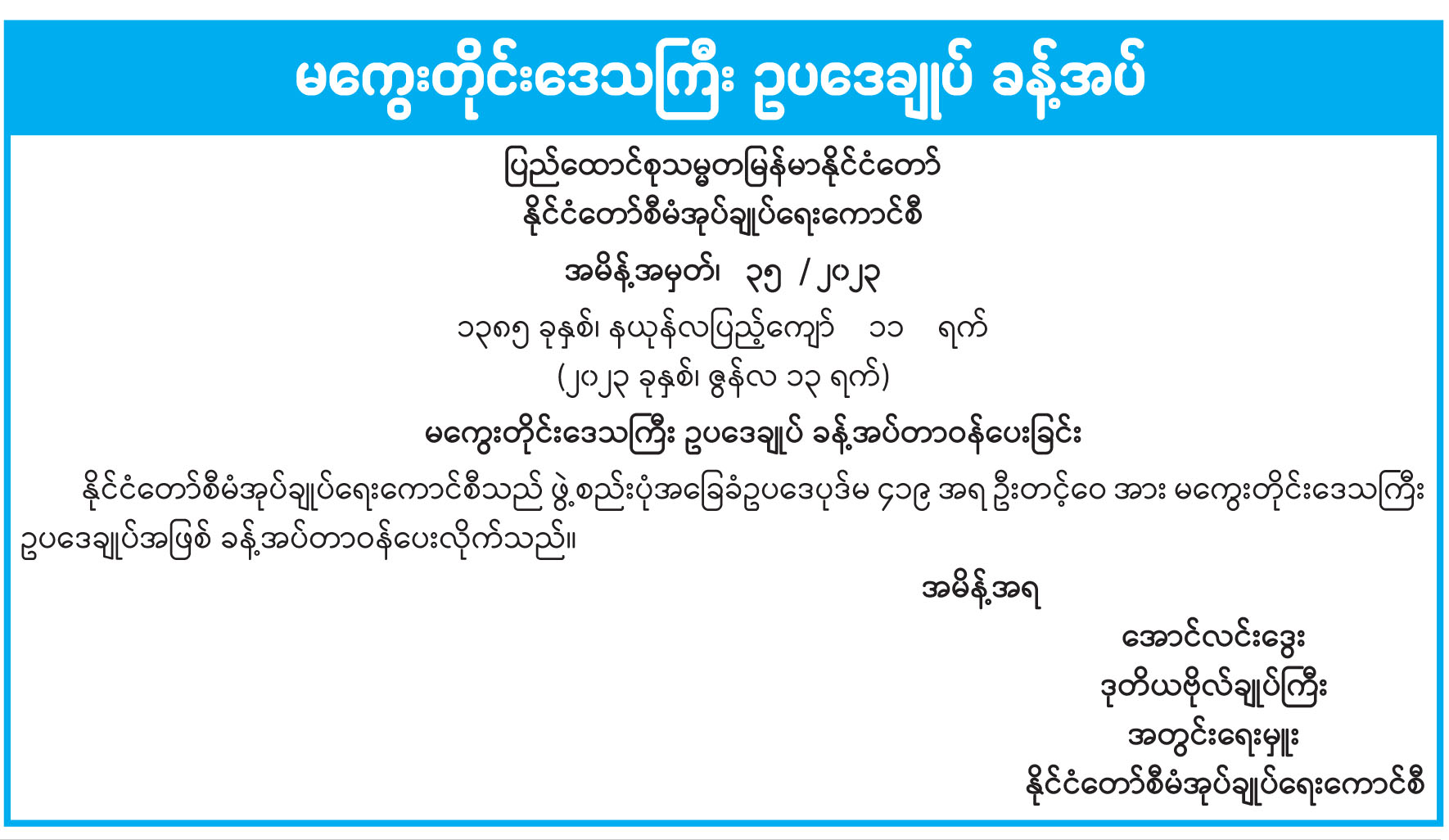 မကွေးတိုင်းဒေသကြီး ဥပဒေချုပ် ခန့်အပ်