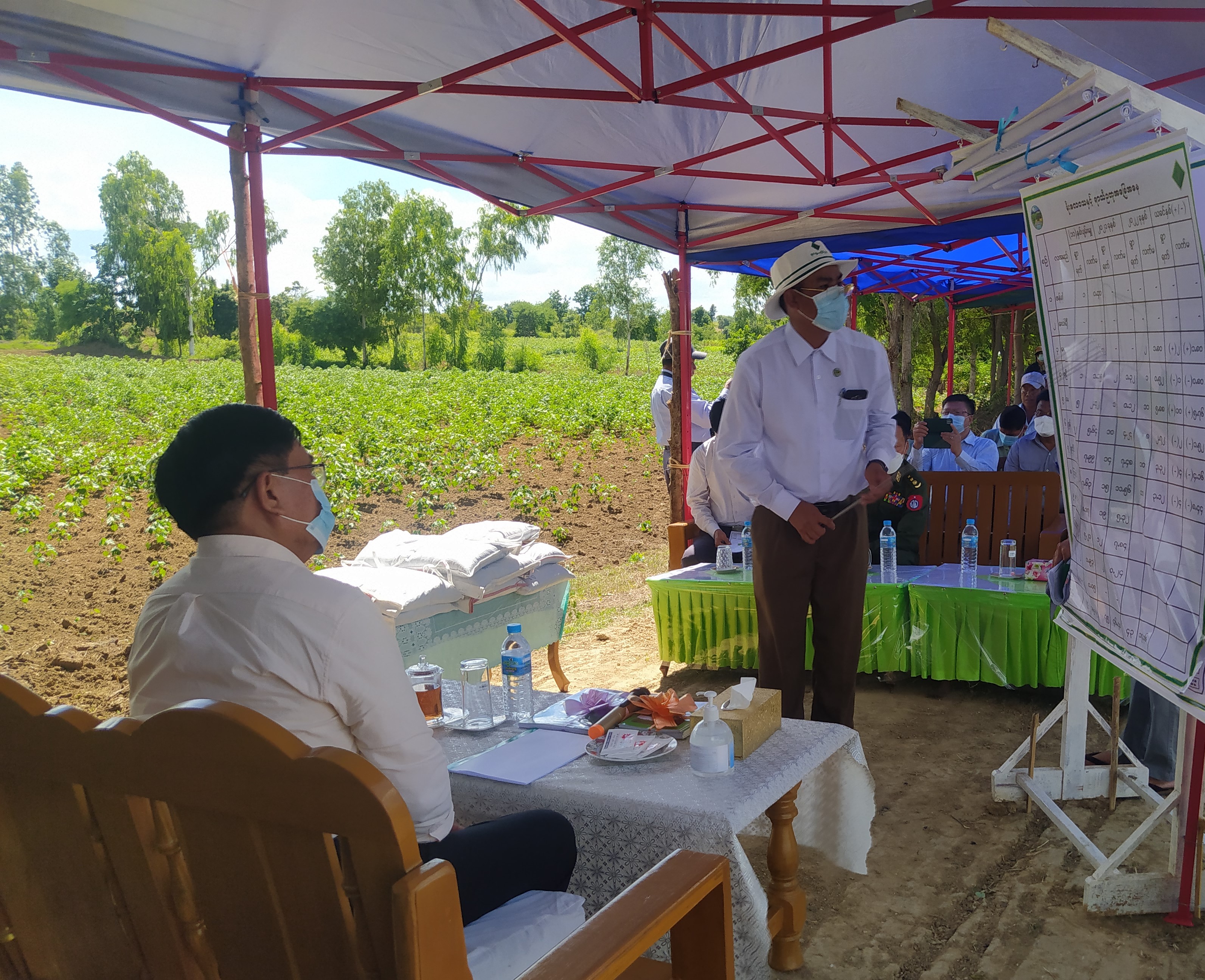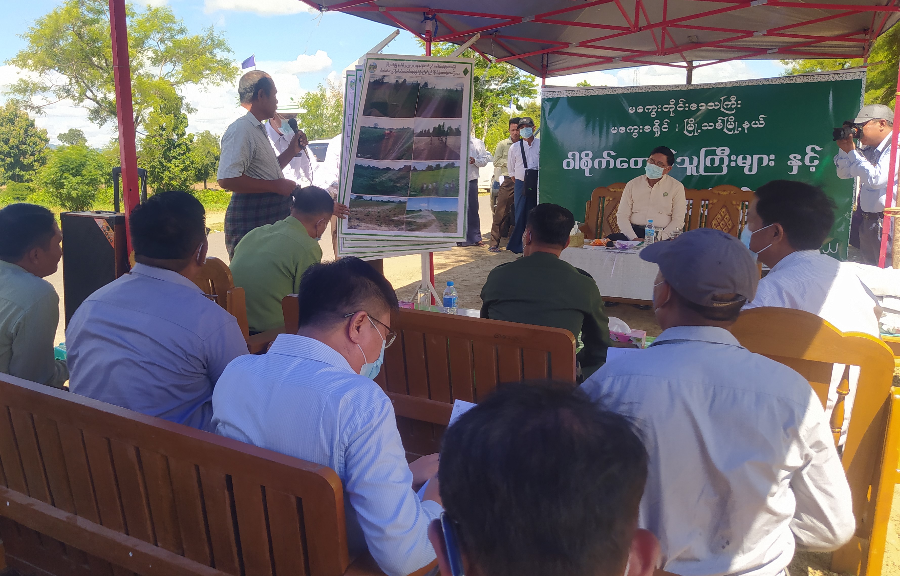 ဦးစွာ မြို့သစ်မြို့နယ် စိုက်ပျိုးရေးဦးစီးဌာန၊ မြို့နယ်ဦးစီးမှူးက စိုက်ပျိုးရေးဆိုင်ရာ အချက်အလက်များနှင့် မိုးသီးနှံစိုက်ပျိုးထုတ်လုပ်မှု အခြေအနေများအား ရှင်းလင်းတင်ပြခဲ့ပြီး ဝန်ကြီးချုပ်က မြန်မာနိုင်ငံအနေဖြင့် စိုက်ပျိုးရေးကိုအခြေခံ၍ စျေးကွက်စီးပွားရေးစနစ်ကို ဖော်ဆောင်နေသည့် နိုင်ငံတစ်နိုင်ငံဖြစ်ကြောင်း၊ နိုင်ငံ၏လူဦးရေအများစုမှာ ကျေးလက်နေပြည်သူများဖြစ်ပြီး စိုက်ပျိုးရေးကို အဓိကထား လုပ်ကိုင်ဆောင်ရွက်ကြရာ လူမှုစီးပွားဘ၀ ဖွံ့ဖြိုးတိုးတက်ရန် လိုအပ်သလို ကျေးလက်နေပြည်သူများ၏ ဘ၀ဖွံ့ဖြိုးတိုးတက်ရေးမှာ စိုက်ပျိုးထုတ်လုပ်မှုကဏ္ဍ အောင်မြင်ဖြစ်ထွန်းရန် အဓိကလိုအပ်ကြောင်း၊ စိုက်ပျိုးရေး အောင်မြင်ဖြစ်ထွန်းရန်အတွက် စိုက်ကွက်မြေပြုပြင်ခြင်းများ ဆောင်ရွက်ရန် လိုအပ်ကြောင်း ပြောကြားခဲ့သည်။