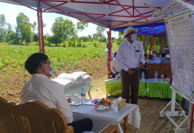 မကွေးတိုင်းဒေသကြီး ဝန်ကြီးချုပ် ဦးတင့်လွင်သည် မြို့သစ်မြို့နယ် ဝါစိုက်ပျိုးထုတ်လုပ်သည့် တောင်သူများအား စက်တင်ဘာ ၃ ရက် မွန်းလွဲ ၂ နာရီက မြို့သစ်မြို့နယ်၊ မြေပြင်သာကျေးရွာအုပ်စု တောင်သူ ဦးမြင့်စိုး၏ မိုးနှောင်းချည်မျှင်ရှည်ဝါမျိုး ယှဉ်ပြိုင်စမ်းသပ်ကွက်တွင် တွေ့ဆုံသည်။