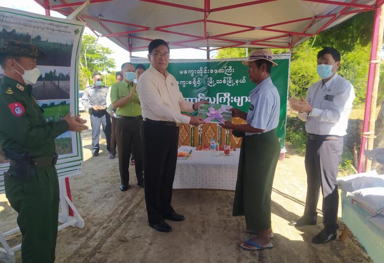 ထို့နောက် တက်ရောက်လာသည့် ဒေသခံတောင်သူများက မိမိတို့ကျေးရွာ ဖွံ့ဖြိုးတိုးတက်ရေးလုပ်ငန်းများနှင့် ပတ်သက်၍ ဆွေးနွေးတင်ပြခဲ့ရာ တင်ပြချက်များအပေါ် တိုင်းဒေသကြီးဝန်ကြီးချုပ်က ဆက်စပ်ဌာနများနှင့် ပေါင်းစပ်ညှိနှိုင်း ဖြည့်ဆည်းဆောင်ရွက်ပေးခဲ့ပြီး နေကြာစိုက်ပျိုးမည့် တောင်သူများအား ဆင်းရွှေကြာ(၂) နေကြာမျိုးများ ထောက်ပံ့ပေးခဲ့ကြောင်း သိရသည်။