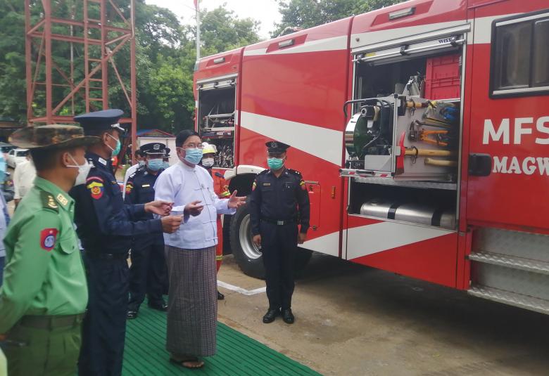 မကွေးတိုင်းဒေသကြီး မီးသတ်ဦးစီးဌာနက စီစဉ်ဖွင့်လှစ်သည့် ခရိုင်အဆင့် ရှာဖွေကယ်ဆယ်ရေး သင်တန်းဖွင့်ပွဲကို ယနေ့နံနက် ၈ နာရီက မကွေးတိုင်းဒေသကြီး မီးသတ်ဦးစီးဌာနတွင် ကျင်းပပြုလုပ်ရာ မကွေးတိုင်းဒေသကြီး အစိုးရအဖွဲ့ ဝန်ကြီးချုပ် ဦးတင့်လွင် တက်ရောက်အမှာစကား ပြောကြားသည်။