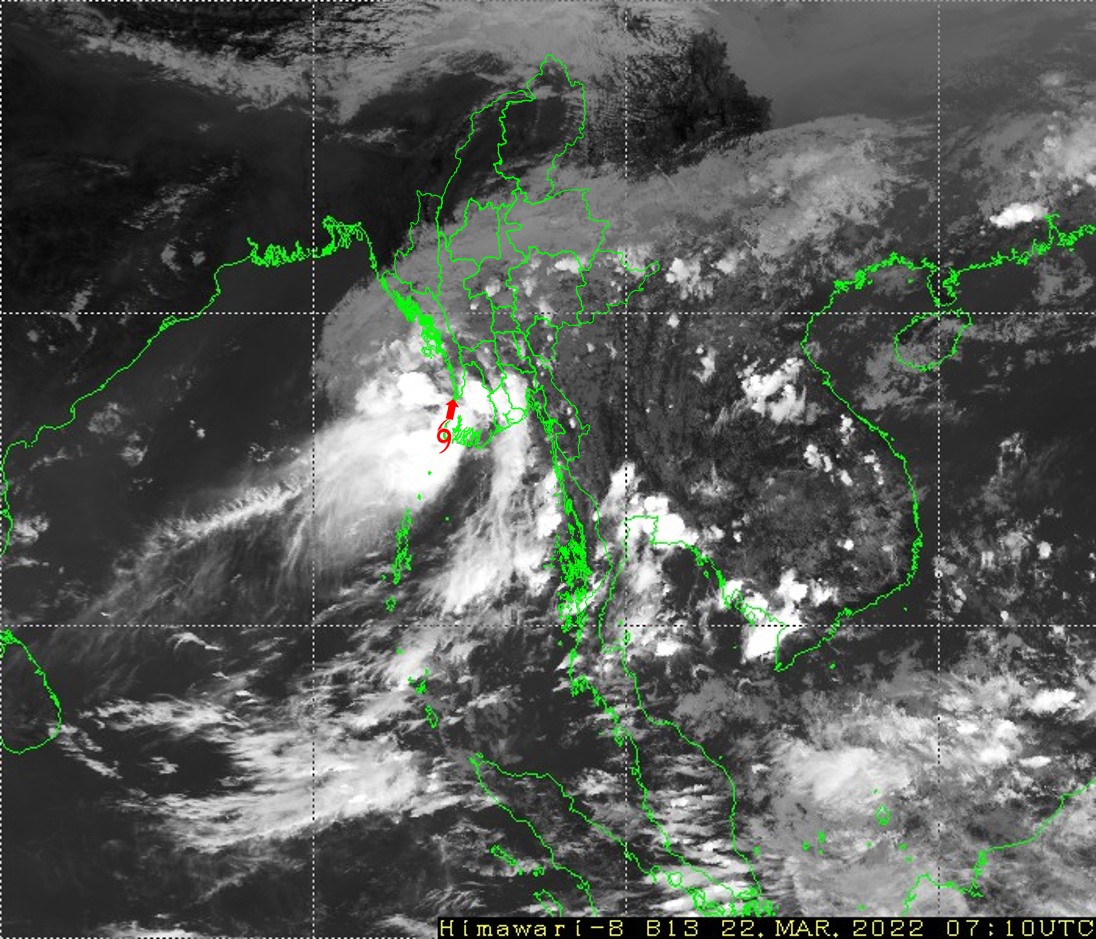 ဘင်္ဂလားပင်လယ်အော်အခြေအနေမှာ ယနေ့မြန်မာစံတော်ချိန်(၁၁:၃၀)နာရီအချိန် တိုင်းထွာချက်များ အရ ကပ္ပလီပင်လယ်ပြင်မြောက်ပိုင်းနှင့် ယင်းနှင့်ဆက်စပ်လျက်ရှိသော ဘင်္ဂလားပင်လယ်အော်အရှေ့ အလယ်ပိုင်းတို့တွင် ဖြစ်ပေါ်နေသော အားကောင်းသော မုန်တိုင်းငယ်(Deep Depression)သည် မြောက်ဘက်သို့ ရွေ့လျားခဲ့ပြီး မြန်မာနိုင်ငံ ဧရာဝတီတိုင်းဒေသကြီးကို ဟိုင်းကြီးကျွန်းမြို့အနီးမှ စတင်ဖြတ်ကျော်ဝင်ရောက်လျက်ရှိသည်။ ဘင်္ဂလားပင်လယ်အော်မြောက်ပိုင်းနှင့် အနောက် အလယ်ပိုင်းတို့တွင် တိမ်အသင့်အတင့် ဖြစ်ထွန်းနေပြီး ကပ္ပလီပင်လယ်ပြင်နှင့် ကျန်ဘင်္ဂလား ပင်လယ်အော်တို့တွင် တိမ်ထူထပ်နေပါသည်။