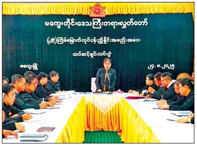 ဦးစွာ မကွေးတိုင်းဒေသကြီး တရားလွှတ်တော်တရားသူကြီးချုပ် ဒေါ်မိမိမော်က (၂၉)ကြိမ်မြောက် လုပ်ငန်းညှိနှိုင်း အစည်းအဝေး၌ ပြည်ထောင်စုတရားသူကြီးချုပ်က လမ်းညွှန်မှာကြားခဲ့သည့် တရားစီရင်ရေး၊ စီမံခန့်ခွဲရေး ကိစ္စရပ်များကို ထပ်ဆင့်ရှင်းလင်း ရွေးကောက်ပွဲ ဆွေးနွေးပြီး အောင်မြင်ရေးအတွက် မိမိကျရာတာဝန်များ ကျေပွန်စွာဆောင်ရွက်ကြရေး၊ နိုင်ငံတော်၏မူဝါဒ၊ ဦးတည်ချက်များနှင့် ဌာနကချမှတ်ထားသော မူဝါဒ၊ ရည်မှန်းချက် လုပ်ငန်းတာဝန်များကို လိုက်နာဆောင်ရွက်ကြရေး၊ အမှုများကို ကြန့်ကြာမှုမရှိစေဘဲ ဥပဒေနှင့်အညီ မှန်ကန်မြန်ဆန်စွာ စစ်ဆေးစီရင်ဆောင်ရွက်ကြရေးနှင့် တရားစီရင်ရေးဆိုင်ရာ မဟာဗျူဟာစီမံကိန်း၏ တတိယနှစ် လုပ်ငန်းအစီအစဉ် အောင်မြင်အောင် (၂၀၂၅) ဝိုင်းဝန်း ပူးပေါင်း ဆောင်ရွက်သွားကြရေးတို့ကို လမ်းညွှန်မှာကြားသည်။