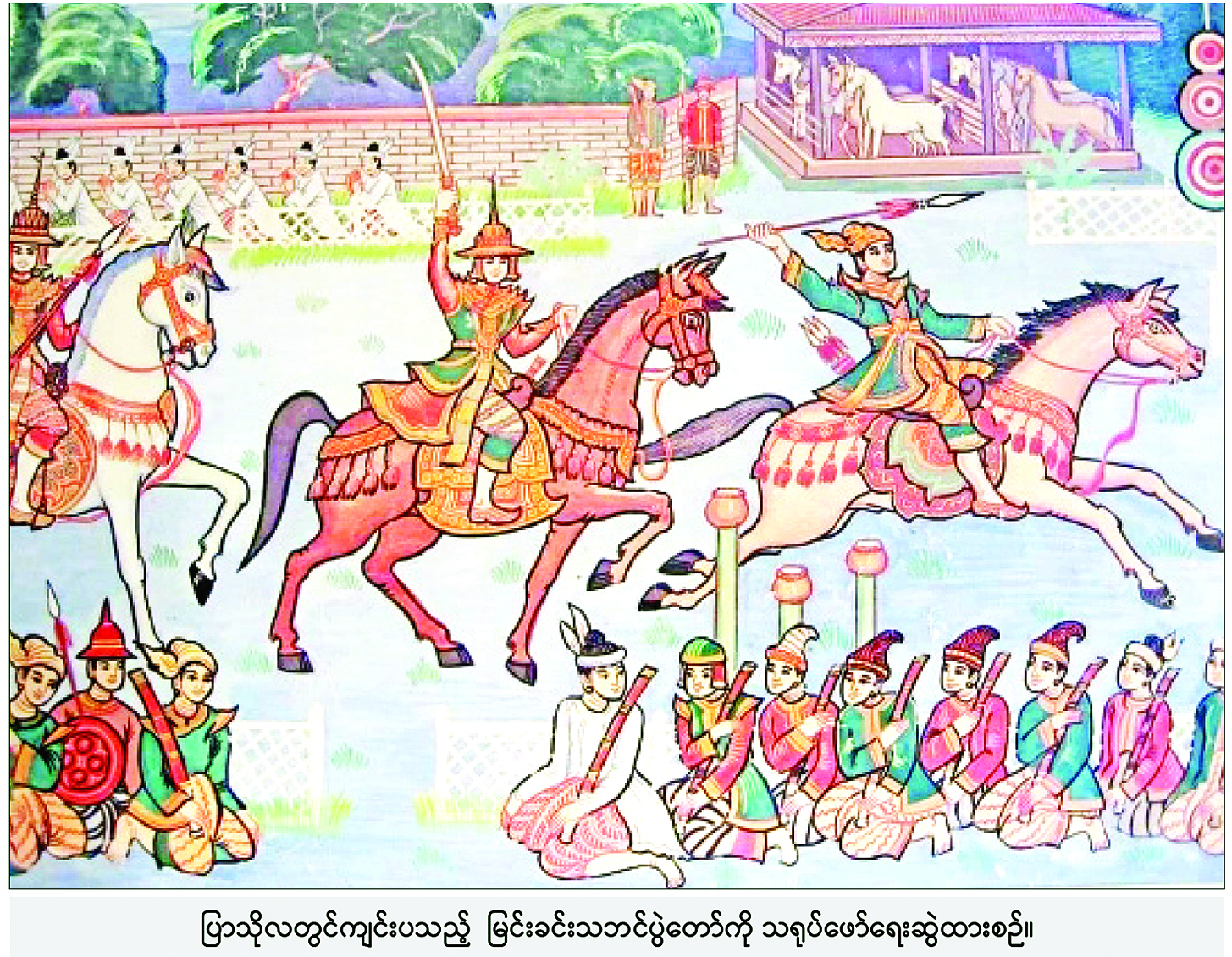 မြန်မာ့တစ်ဆယ့်နှစ်လ ရာသီပွဲတော်များစွာရှိသည့်အနက် ထူးခြားချက်အဖြစ် ပြာသိုလတွင် ကျင်းပသော နိုင်ငံတော်ကာကွယ်ရေးကို အထောက်အကူပြုသည့် မြင်းခင်းသဘင်ပွဲပင်ဖြစ်သည်။ တစ်နည်းအားဖြင့် သူရဲကောင်းရွေးပွဲလည်း ဖြစ်သည်။ ရှေးခတ်မြန်မာရှင်ဘုရင်များလက်ထက် ကာလက မြင်းခင်းသဘင်ပွဲ၌ မင်းညီမင်းသားများ၊ မှူးမတ်များနှင့် စစ်သေနာပတိများသည် ရာထူး အဆင့်လိုက် သတ်မှတ်ထားသော မိမိတို့အဆောင် အယောင်အဝတ်အစားများကို ဝတ်ဆင်ကြကာ ဓားရေး၊ လှံရေး၊ လေးရေး၊ သေနတ်ရေး၊ မြင်းရေး၊ ဆင်ရေး အစရှိသည်များကို လေ့ကျင့်ပြသကြသည်။