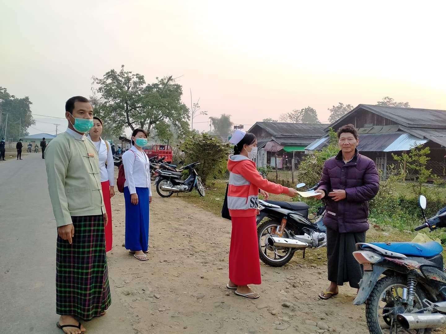 ထိုသို့ပူးပေါင်းဆောင်ရွက်ရာတွင် ကျန်းမာရေးနှင့်အားကစားဝန်ကြီးဌာနကထုတ်ဝေထားသော ကိုဗစ်-၁၉ လတ်တလောအသက်ရှူလမ်းကြောင်းဆိုင်ရာ ရောဂါဖြစ်ပွားသောဒေသ မှပြန်လာသူများနှင့်သွားစဉ်/အိမ်တွင် နေထိုင်စဉ်လိုက်နာရမည့်အချက်(၉)ချက်နှင့်လတ်တလော အသက်ရှူလမ်းကြောင်းဆိုင်ရာရောဂါဖြစ်ပွား သောဒေသမှပြန်လာသူများ၏အတူနေမိသားစုဝင်များလိုက်နာရမည့်အချက်(၉)ချက်ပါဝင်သည့် ဗီနိုင်းပိုစတာ များကို လူအသွားအလာများသောနေရာတွင်စိုက်ထူခဲ့ကြပြီး ရောဂါကူးစက်နိုင်ခြေရှိသည့်နည်းလမ်းများ၊ သံသယဖြစ်ဖွယ်ရောဂါလက္ခဏာများ၊ ကာကွယ်နိုင်မည့်နည်းလမ်းများစသည့်အချက်အလက်များပါသော လက်ကမ်းစာစောင်များကို မြို့မဈေးအတွင်းနှင့်လမ်းသွားလမ်းလာပြည်သူများကိုဖြန့်ဝေခဲ့ကြသည့်အပြင် Covid-19 ရောဂါနှင့်ပတ်သက်၍ဆောင်ရန်ရှောင်ရန်အချက်များကိုလည်း အသိပညာ ပေးဟောပြောခဲ့ ကြောင်း သိရသည်။