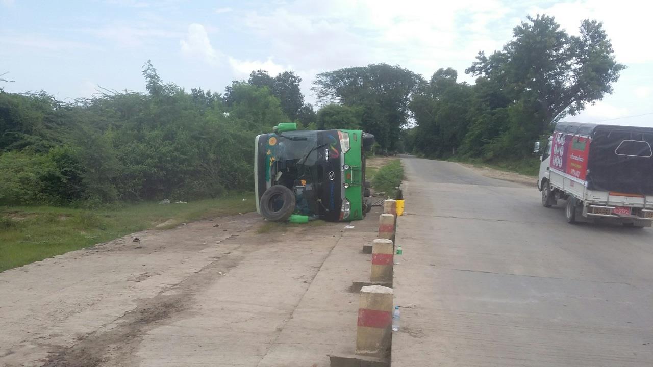 ဖြစ်စဉ်မှာ ရန်ကုန်မှ ပခုက္ကူမြို့သို့ ယာဉ်မောင်း ဦးထွန်းဇော် ၊ ပဲခူးမြို့နေသူ မောင်းနှင်လာသော ဝေဖြိုးအောင် ခရီးသည်တင် မှန်လုံယာဉ် ယာဉ်အမှတ် 6G/………... King Long Bus အမျိုးအစား အစိမ်းရောင်ယာဉ်သည် မိတ္ထီလာ-မလှိုင်သွားကားလမ်း မိုင်တိုင်အမှတ် (၁၀/၇)နှင့် (၁၁/ဝ)ကြား မလှိုင်မြို့နယ် သပြေပင်ကျေးရွာအနီး ရေကျော်ချောင်းတွင် မျက်နှာချင်းဆိုင်မှ မောင်းနှင်လာသော ယာဉ်အား ရှောင်တိမ်းရာမှ လမ်းညာဘက်ခြမ်းသို့ ဘီးချော်ကျပြီး တိမ်းမှောက်လဲကျ၍ ယာဉ်ပေါ်ပါ ယာဉ်မောင်း၊ယာဉ်နောက်လိုက်အပါအဝင် အမျိုးသား(၃၁)ဦး၊အမျိုးသမီး(၁၄)ဦး၊ စုစုပေါင်း (၄၅)ဦး အနက် အမျိုးသား (၇)ဦး၊အမျိုးသမီး(၆)ဦးတို့ ဒဏ်ရာရရှိခဲ့သဖြင့် မိတ္ထီလာပြည်သူ့ဆေးရုံကြီးသို့ ဆေးကုသနိုင်ရန် တင်ပို့ထားကြောင်း သိရသည်။