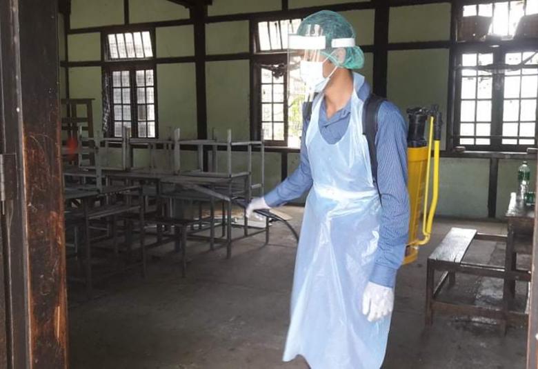 မလှိုင်မြို့တွင် ကျောင်းများပြန်လည်ဖွင့်လှစ်ပါက ကျောင်းသားများ ကိုဗစ်-၁၉ရောဂါ ကင်းဝေးစေရန် Quarantine ထားခဲ့သော ကျောင်းများအနက် မလှိုင်မြို့ အခြေခံပညာ အထက်တန်းကျောင်းအား ပိုးသတ်ဆေးဖြန်းခြင်းကို မလှိုင်မြို့နယ် ကိုဗစ်-၁၉ ထိန်းချုပ်ကာကွယ်တုံ့ပြန်နိုင်ရေး အဖွဲ့မှ ယနေ့မနက် ၉ နာရီခွဲ အချိန်ခန့်တွင် ဆောင်ရွက်ခဲ့ကြသည်။